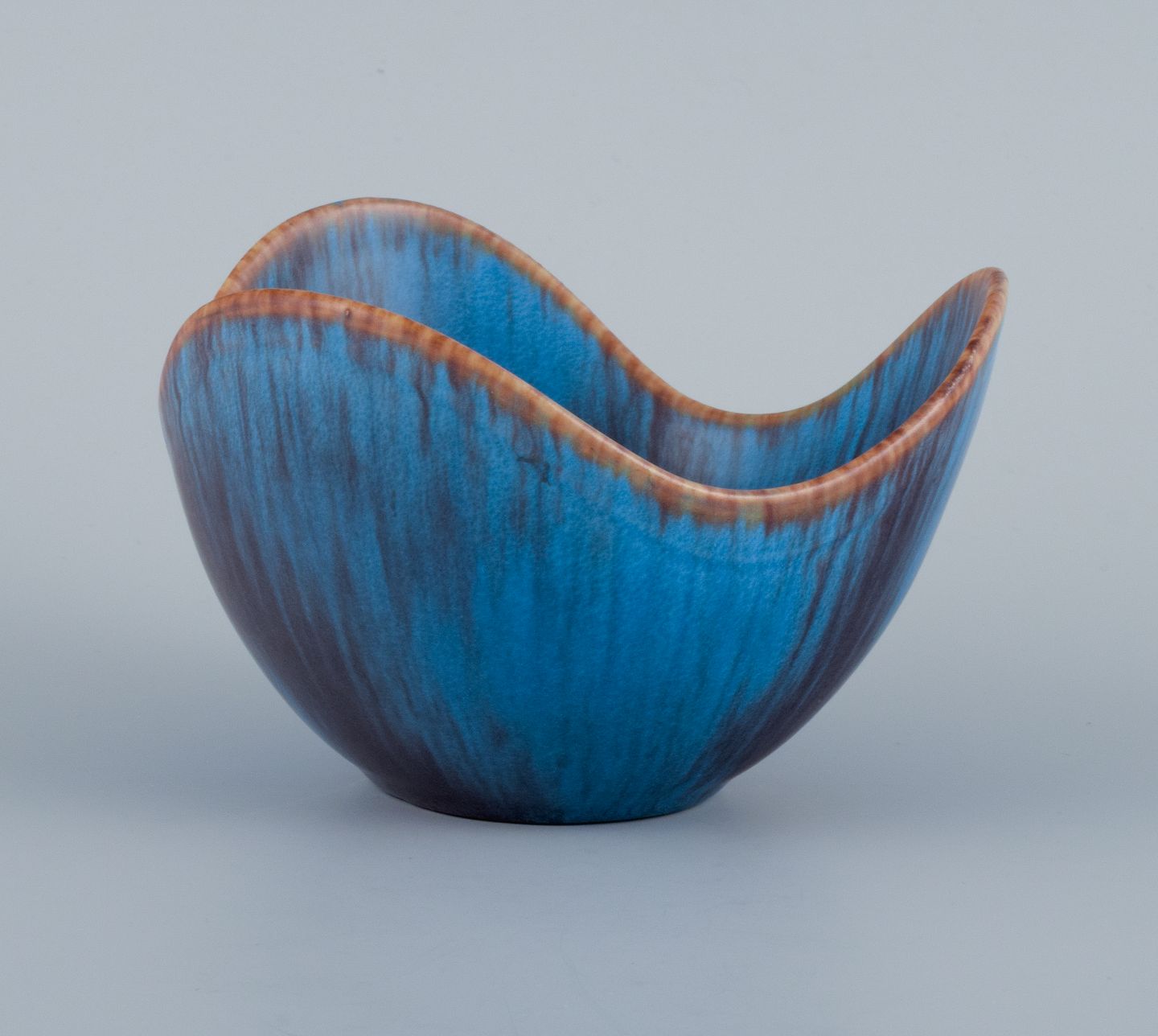 Gunnar Nylund (1904-1997) for Rörstrand, keramikskål i blå og brune nuancer.