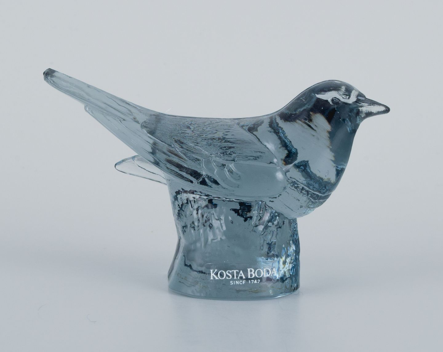 Paul Hoff for Kosta Boda / Svenskt Glas, fem glasfugle. WWF. Ca. 1980'erne. Stemplet. Mål blå fugl: L 9,5 x H 6,0 cm.