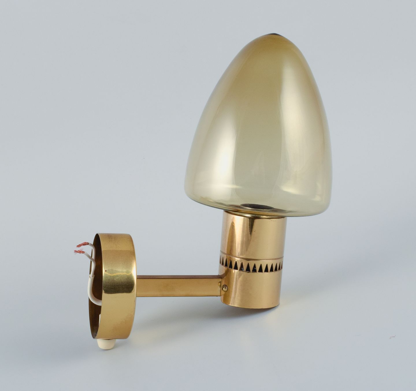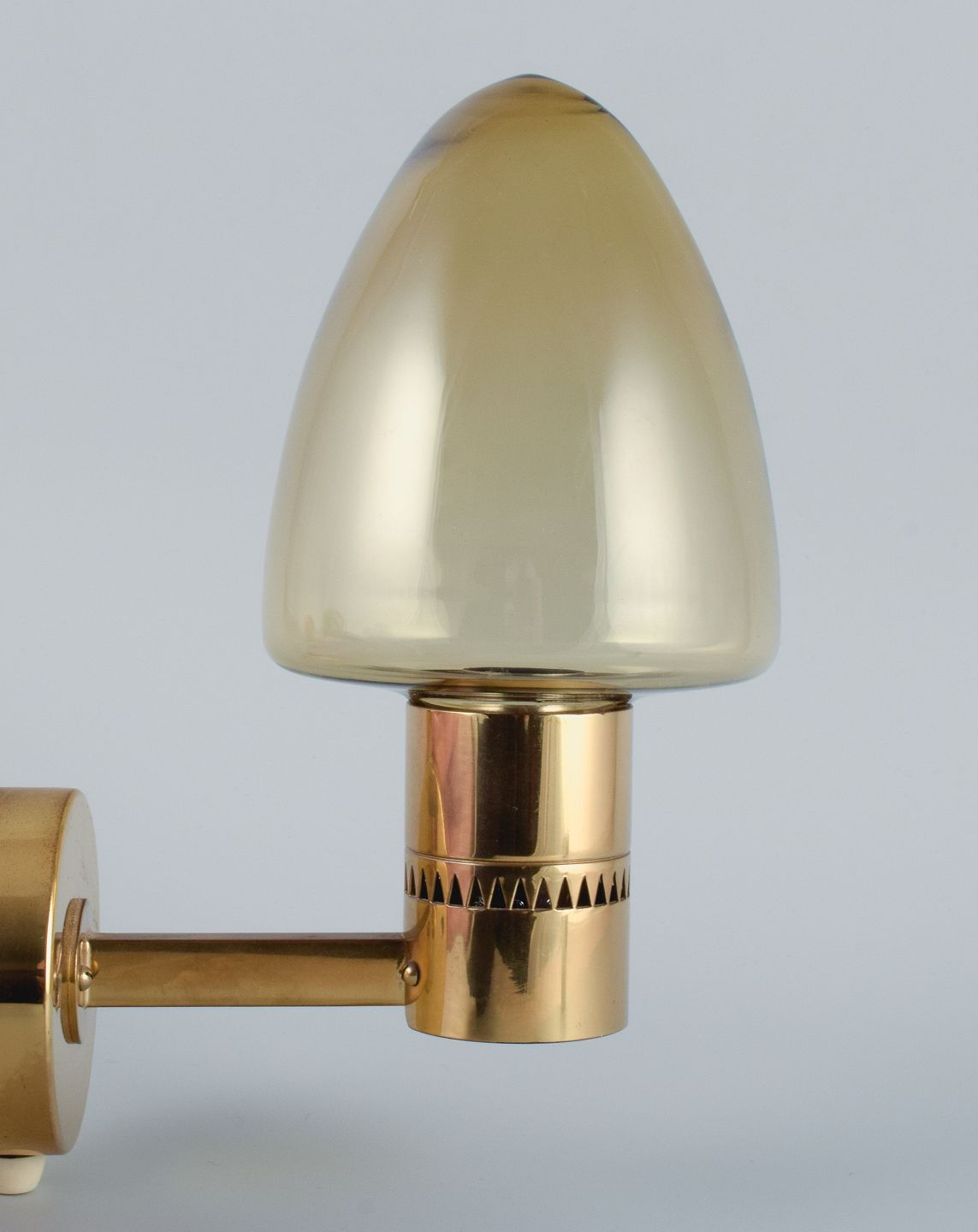 Hans Agne Jakobsson, Sverige, Et par væglampetter i messing og røgfarvet glas. 1970’erne. I flot stand med minimalt brugspræg. 220 wolt. Mærkat. Mål: H 21,0 x L 15,0 cm.