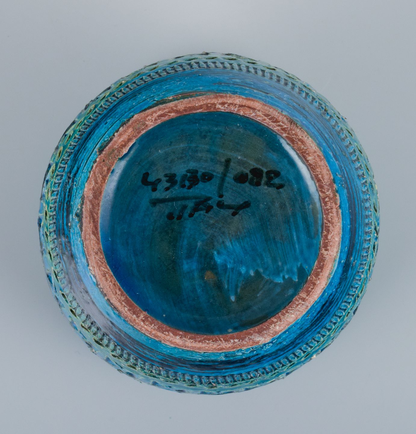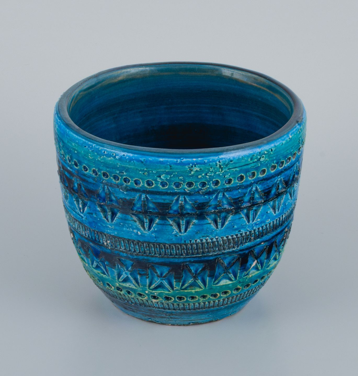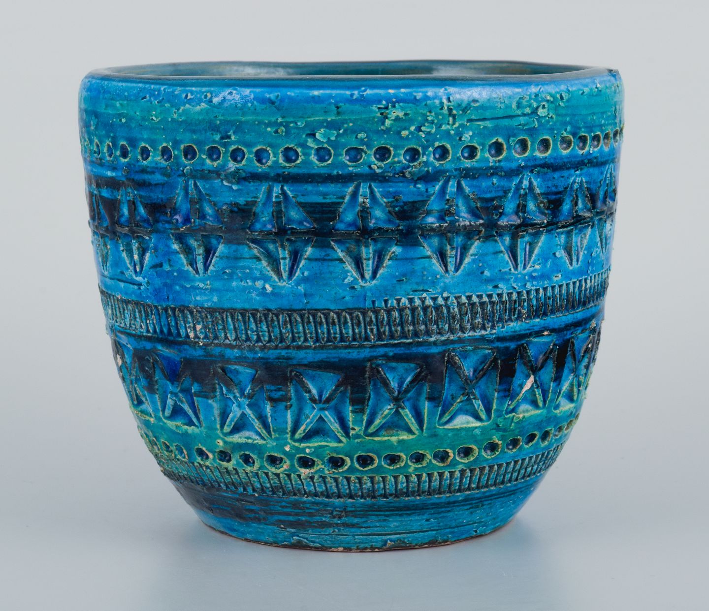 Aldo Londi for Betossi, Italien. Keramik, urtepotteskjuler, azurblå og grøn glasur. 1960’erne. I flot stand med enkelte ubetydelige afslag. Stemplet. Mål: H 10 x D 12,0 cm.