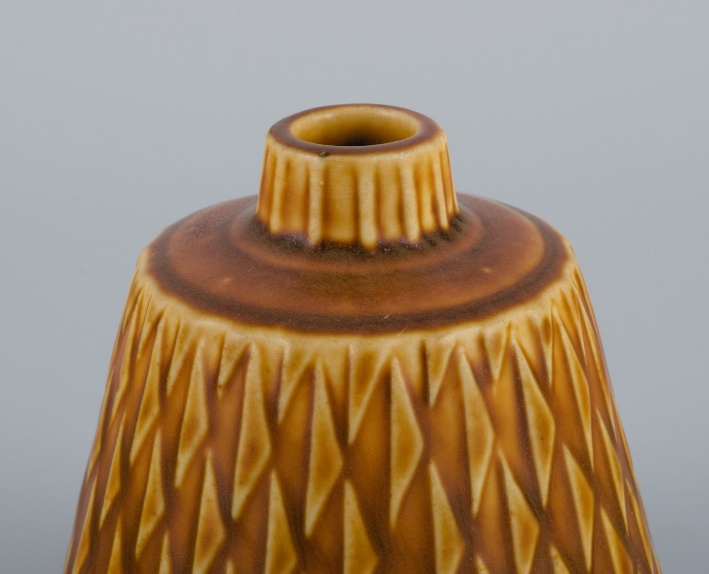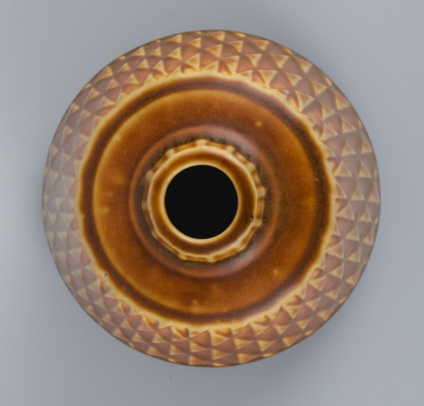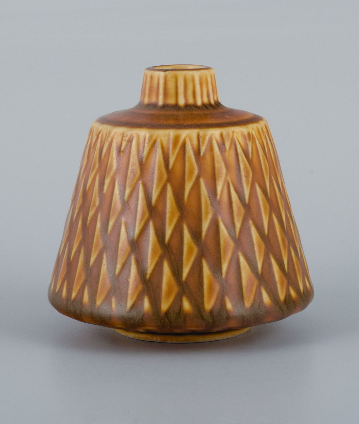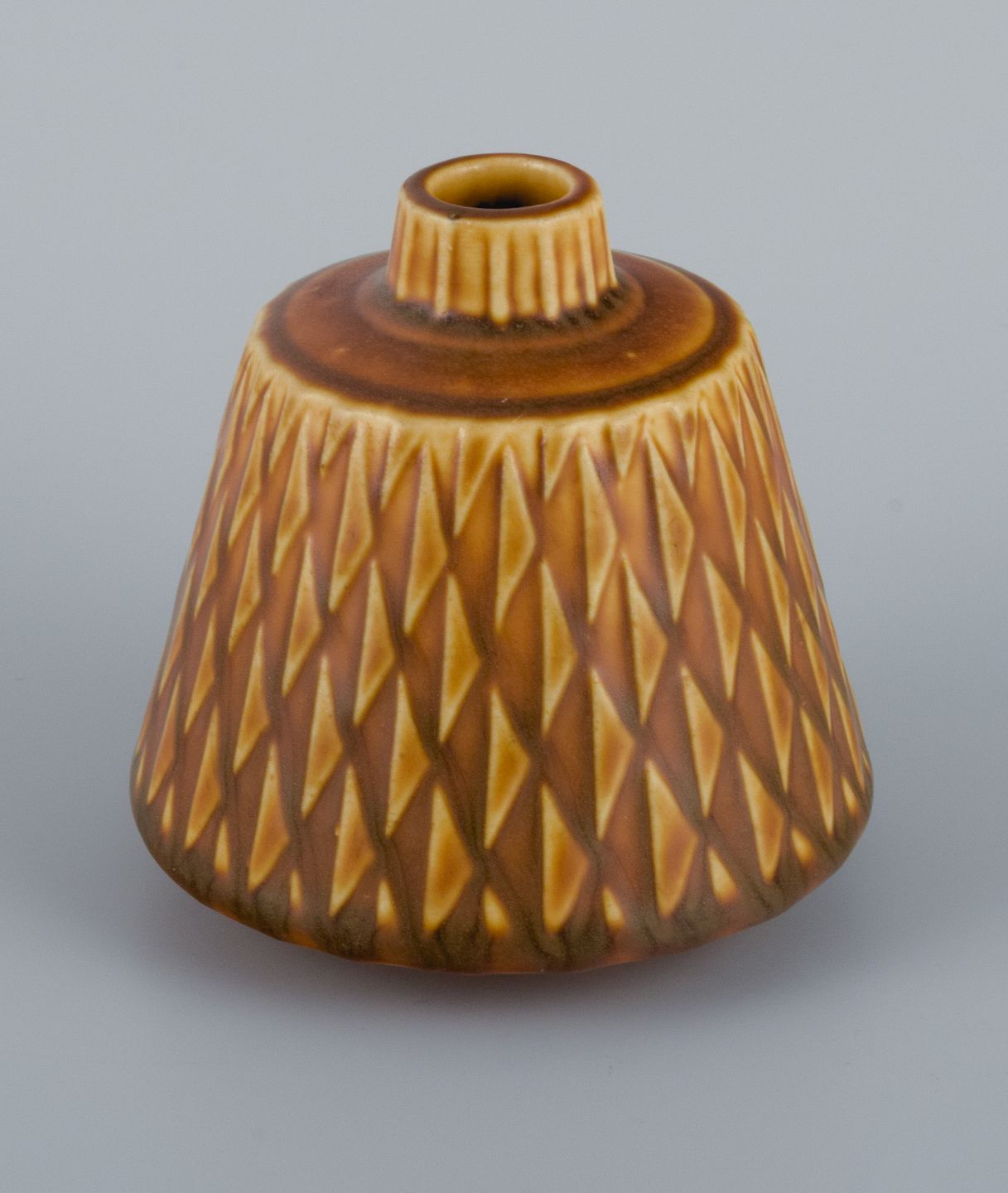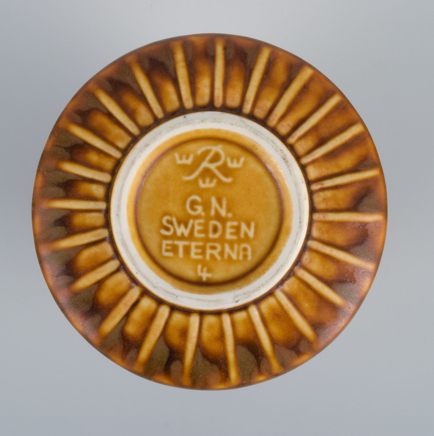 Gunnar Nylund for Rörstrand, "Eterna" ceramic vase with glaze in yellow-brown shades. 1970s. Marked. First factory quality. In perfect condition. Dimensions: H 10.0 x D 9.0 cm.