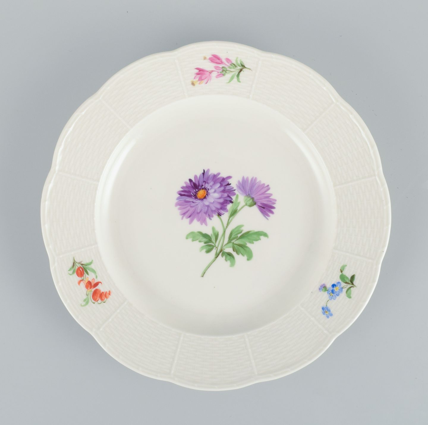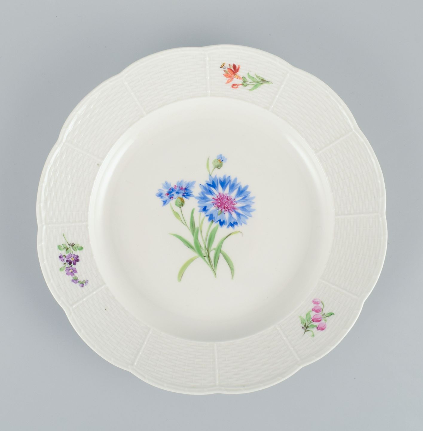 Meissen, et sæt på fire middagstallerkner i porcelæn.