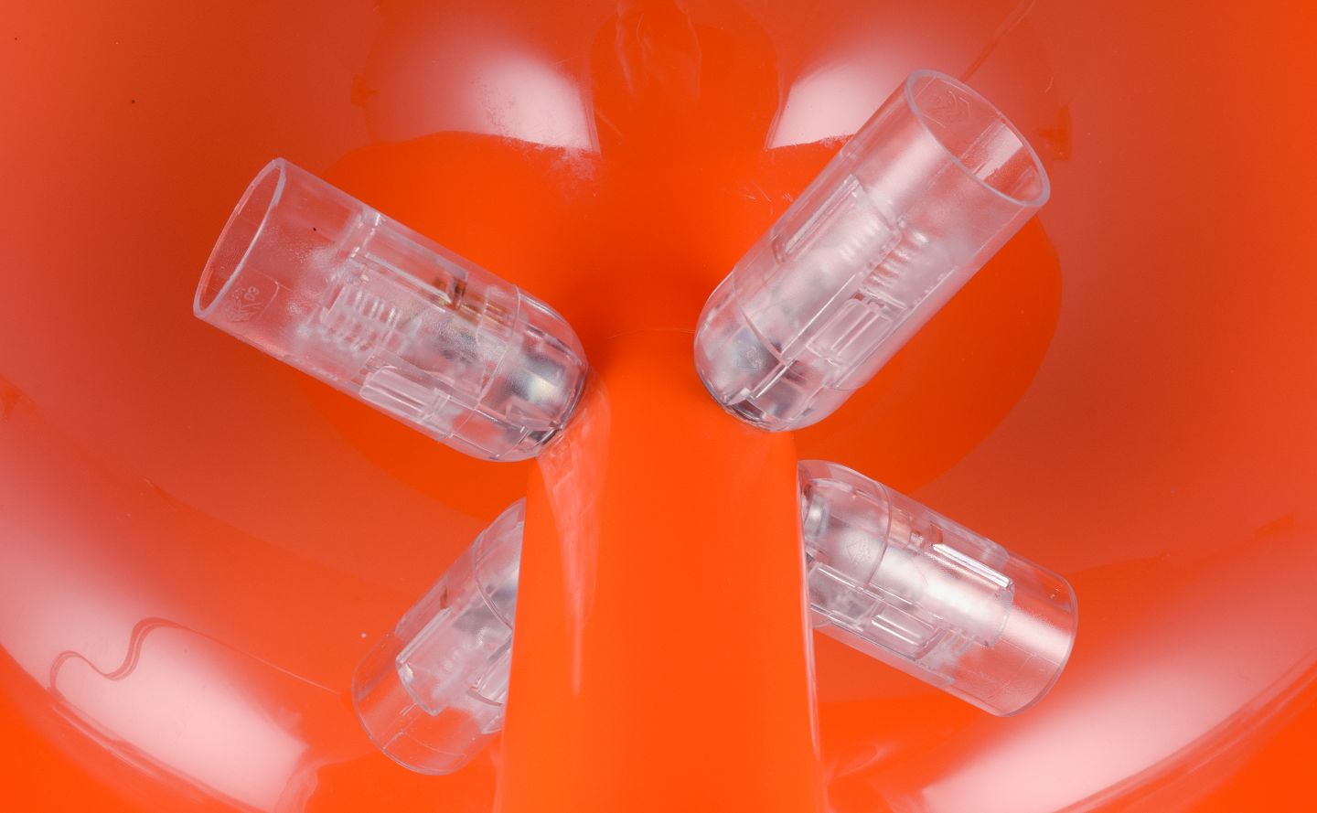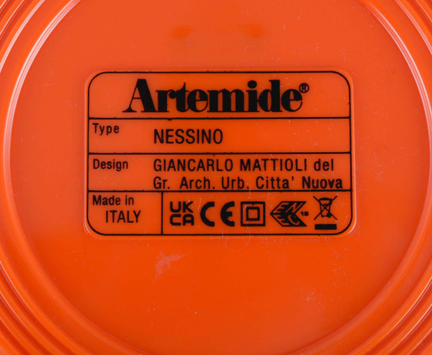 Giancarlo Mattioli for Artemide, Italien, ”Nessino” bordlampe i orange plast. 2000-tallet. Perfekt ubrugt stand. Stemplet. Mål: D 33,0 x H 12.0 cm.