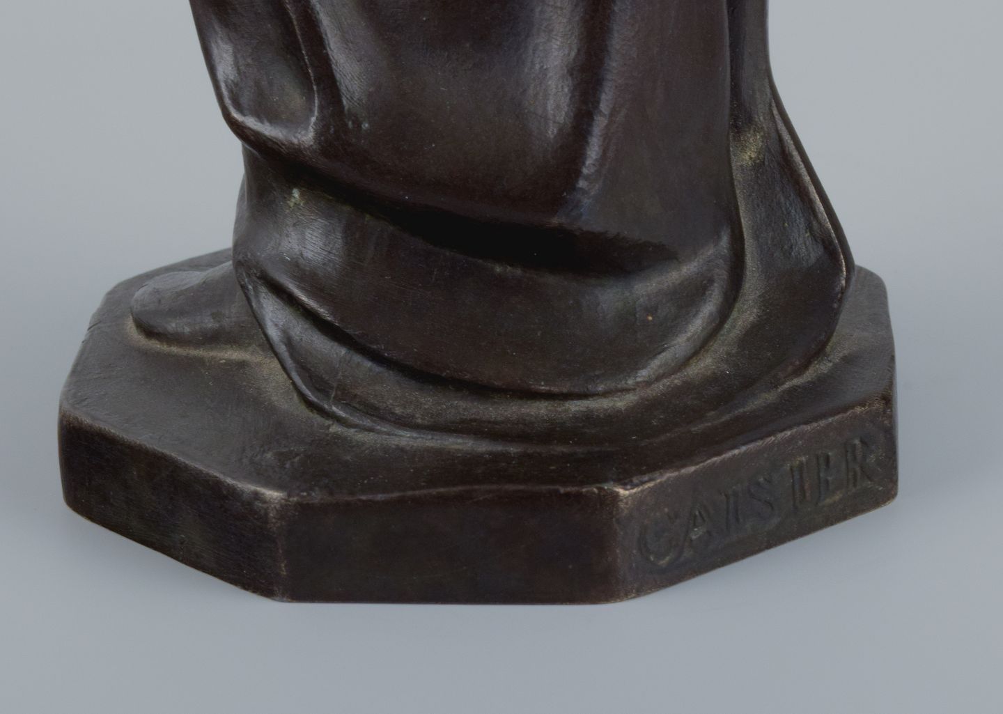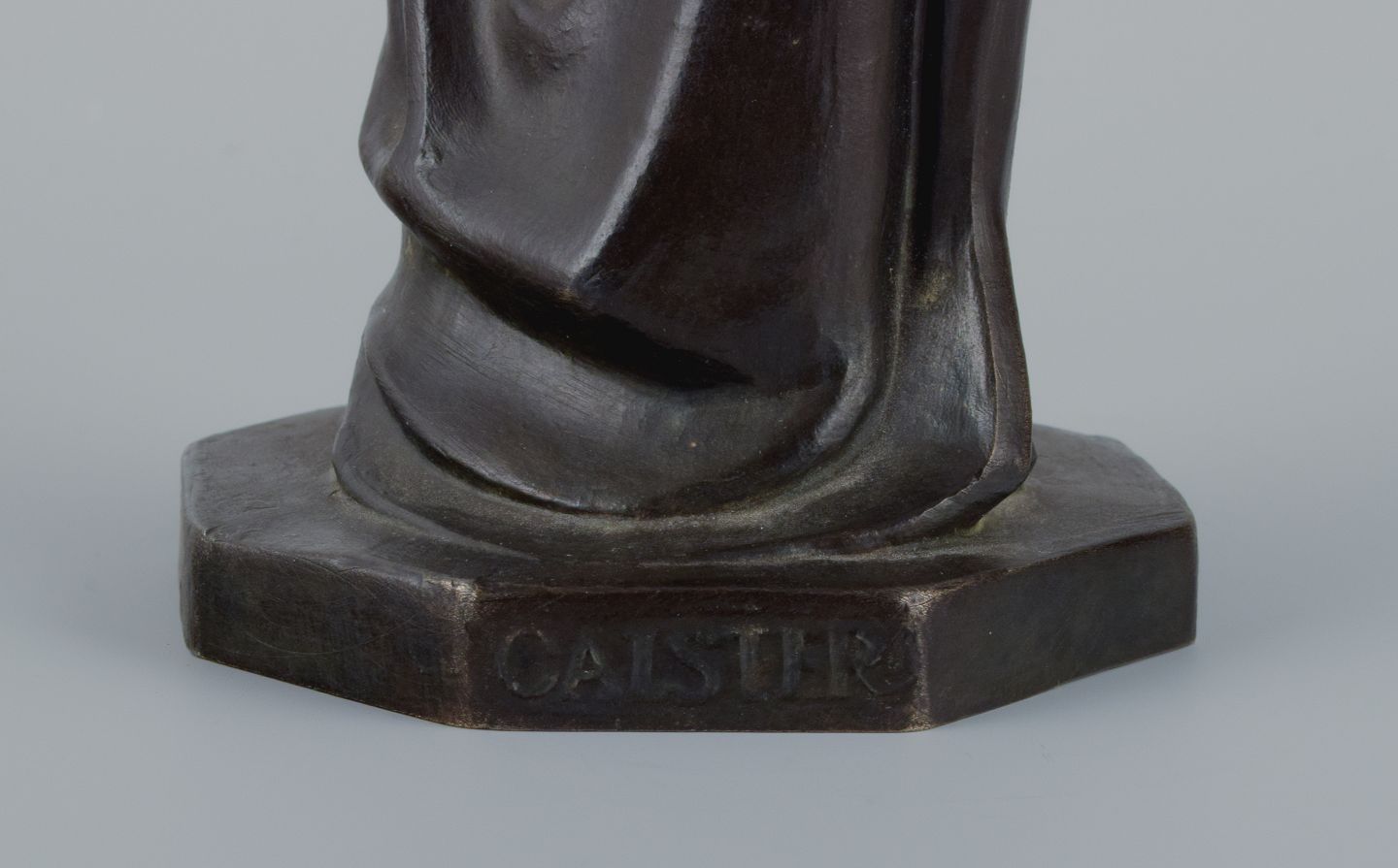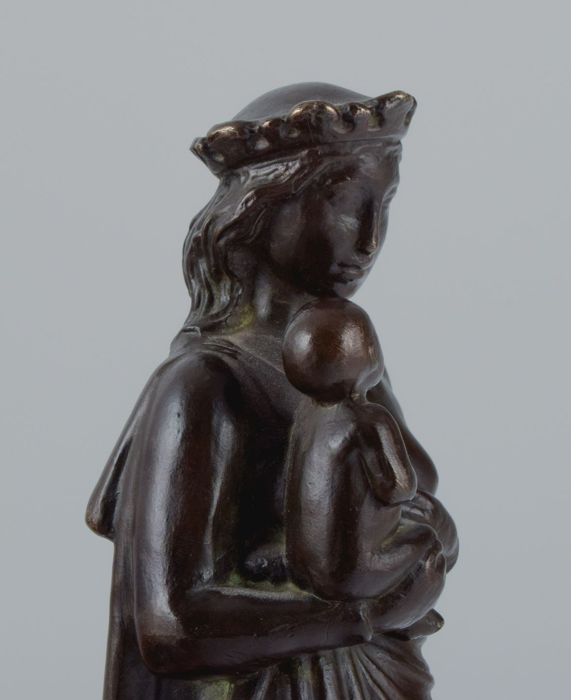 Johan G. C. Galster (1910-1997) dansk skulptør, bronzefigur af Jomfru Marie og barn. Sidste halvdel af 1900-tallet. I flot stand med god patina. Mål: H 26,0 x D 8,0 cm.