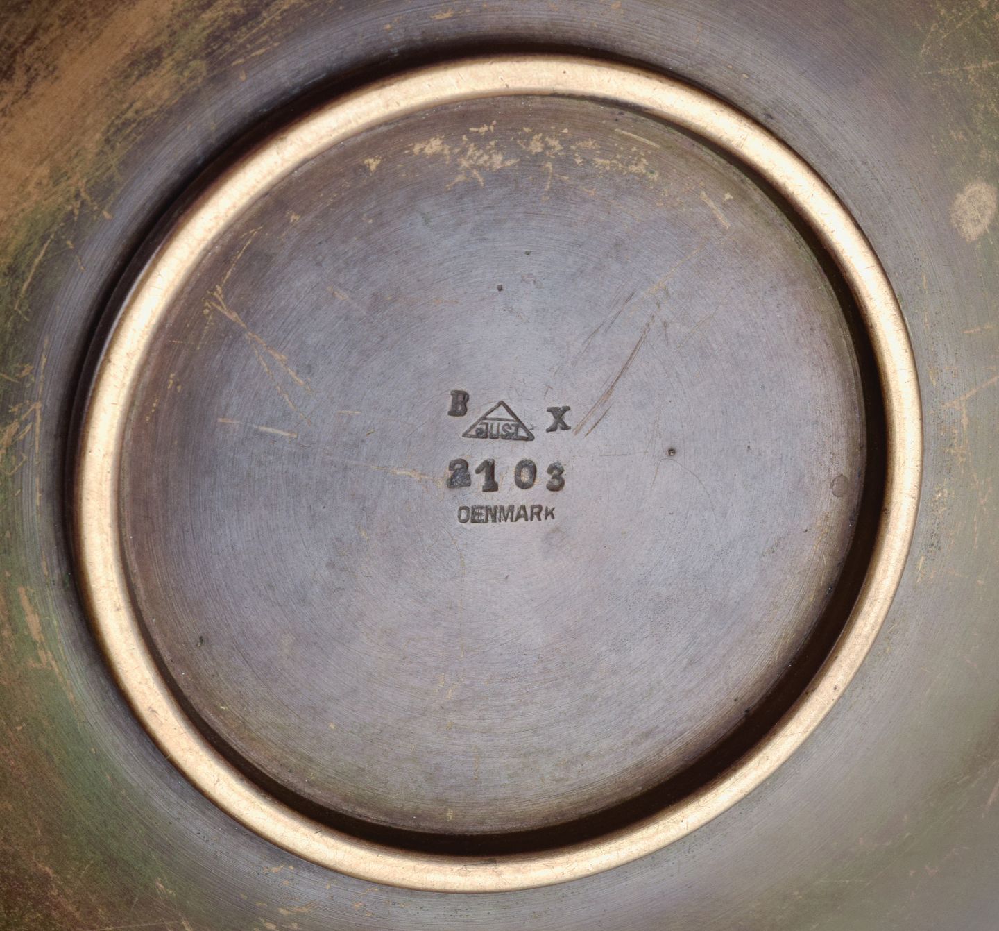 Just Andersen, Art Deco bronzefad. 1940’erne. Modelnummer B 2103. Stemplet. I flot stand med god patina. Mål: D 18,0 x H 3,0 cm.