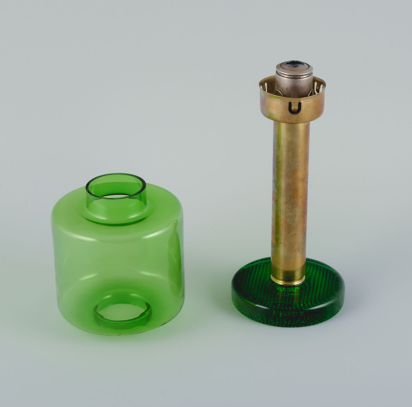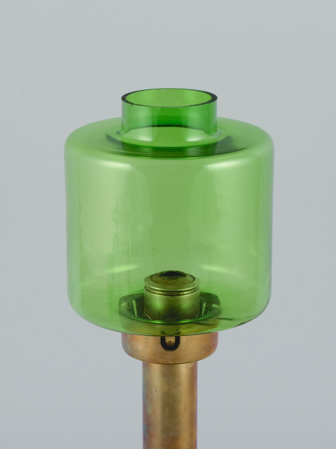 Hans-Agne Jakobsson (1919-2009), table lamp in green glass and brass for candles. 1970s. In good condition, insignificant chip at the bottom of the glass screen. Dimensions: H 32.0 x D 11.0 cm.
