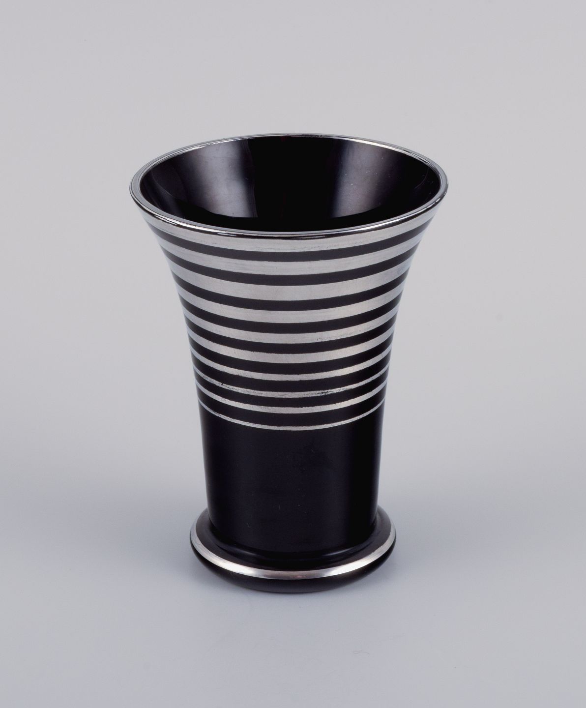 Lille Art Deco glasvase, Tyskland. Med horisontale sølvindlæg.
