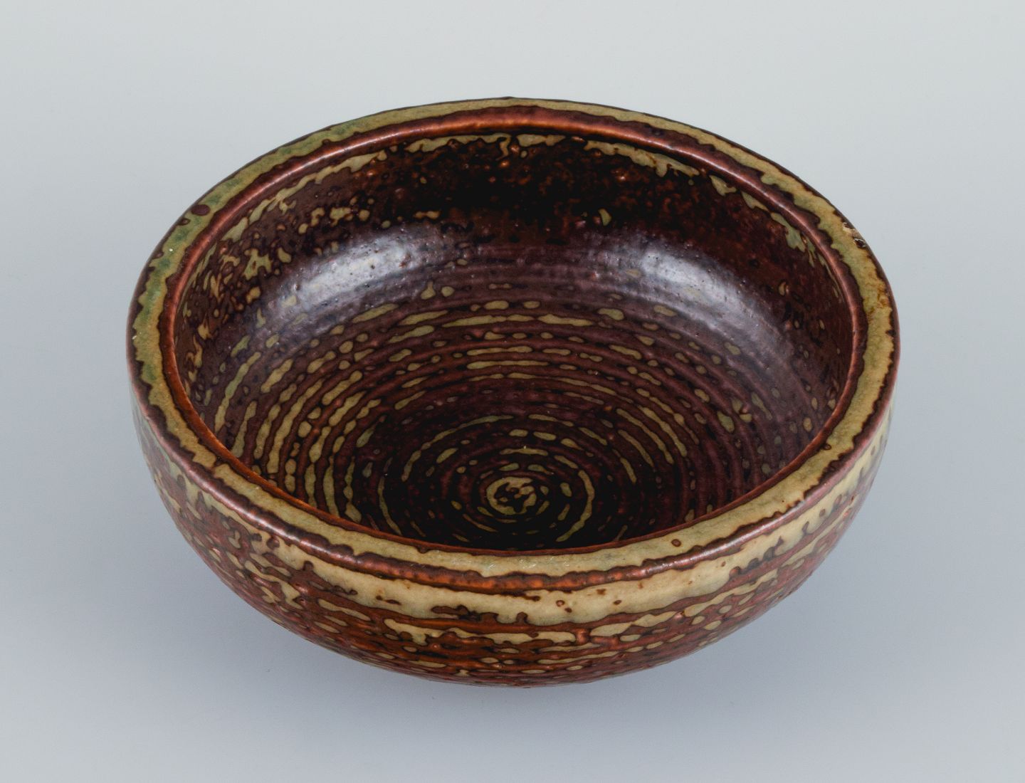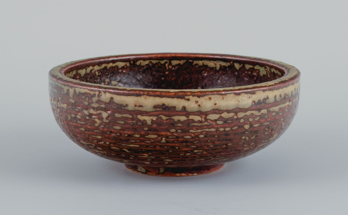 Kresten Bloch for Royal Copenhagen, skål i stentøj med sungglasur. 1957. Stemplet. Første sortering. Mål: D 14,7 x H 5,5 cm.