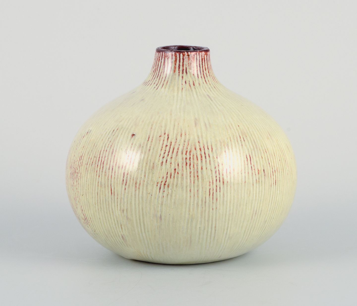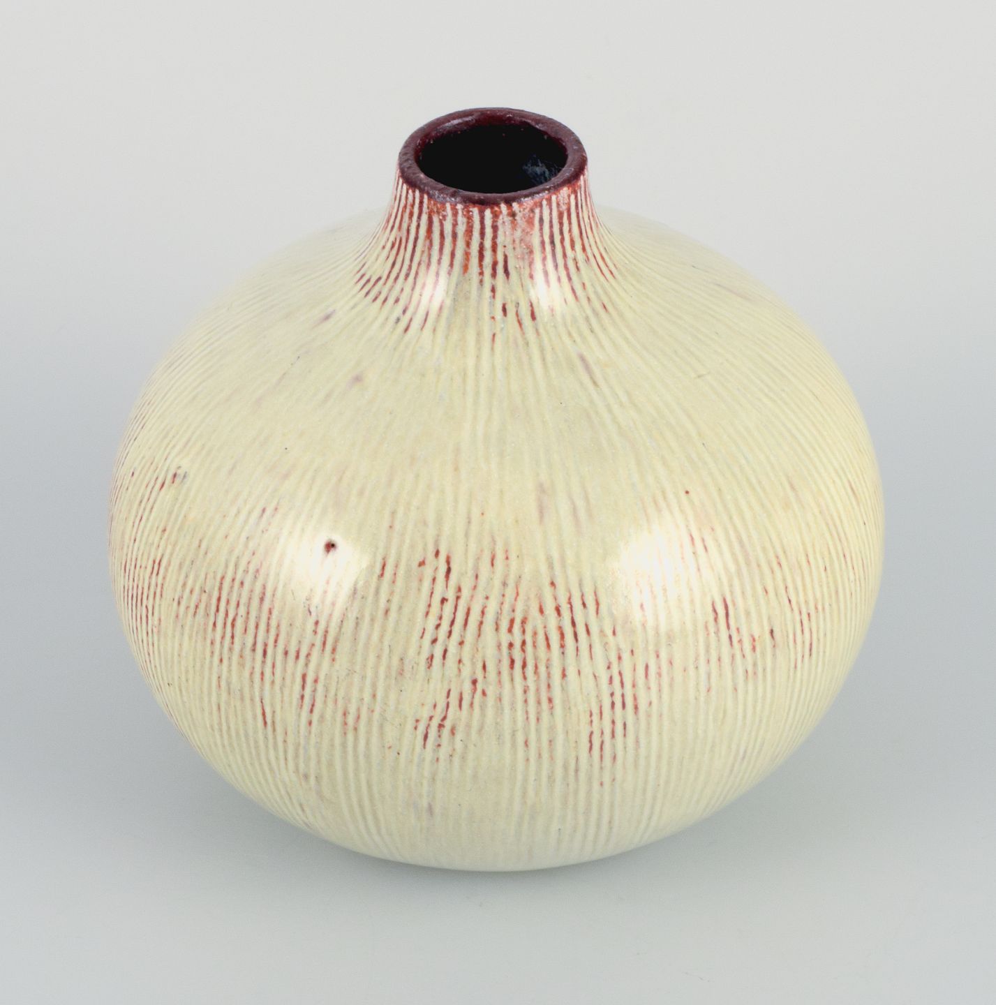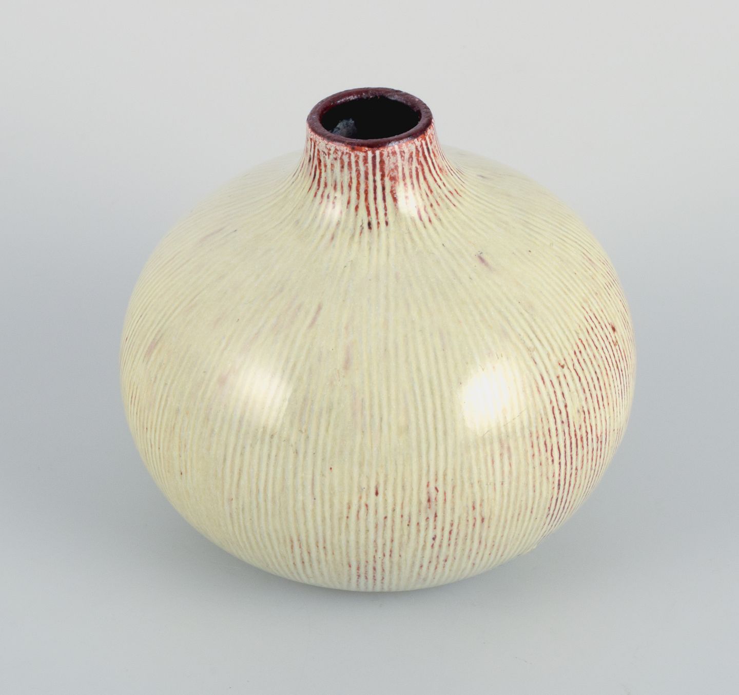Osa, Denmark. Unique ceramic vase in cream-colored glaze. 1970s. In perfect condition Dimensions: H 8.0 x D 9.0 cm. OSA was a collaboration between Aase Feilberg, Chr. Frederiksen and Gutte Eriksen.