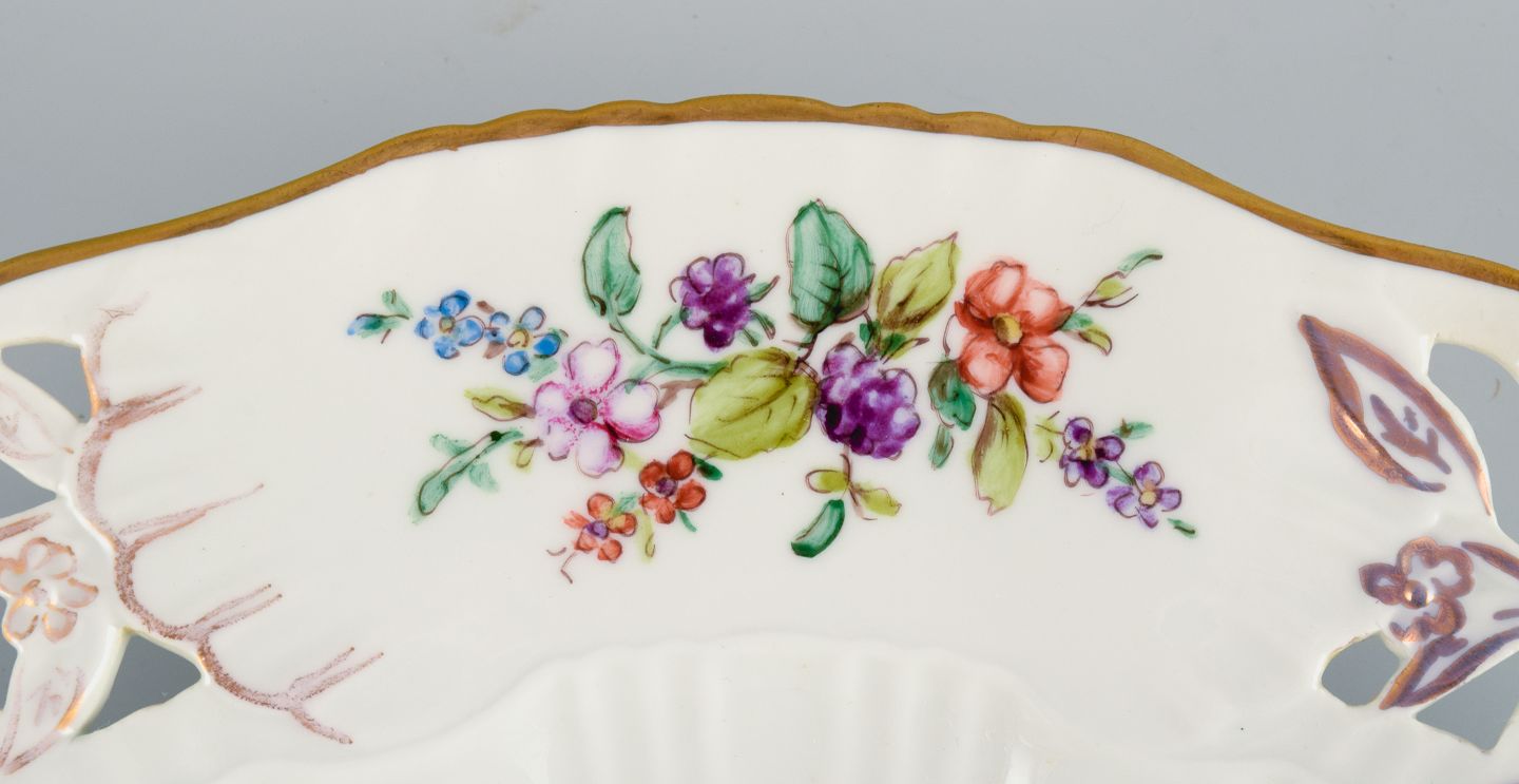 Royal Copenhagen, a set of four antique dinner plates with reticulated rim and leaf work.