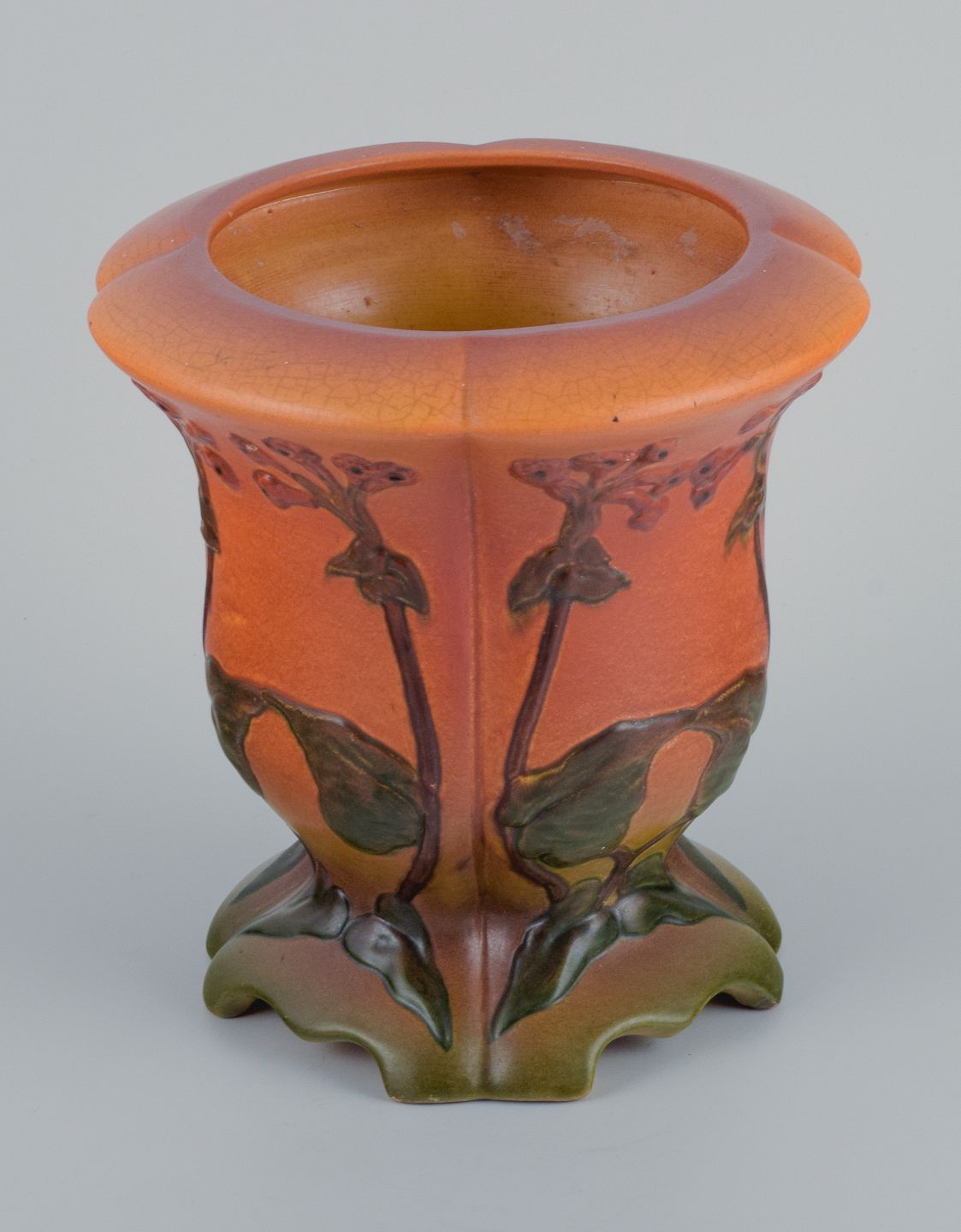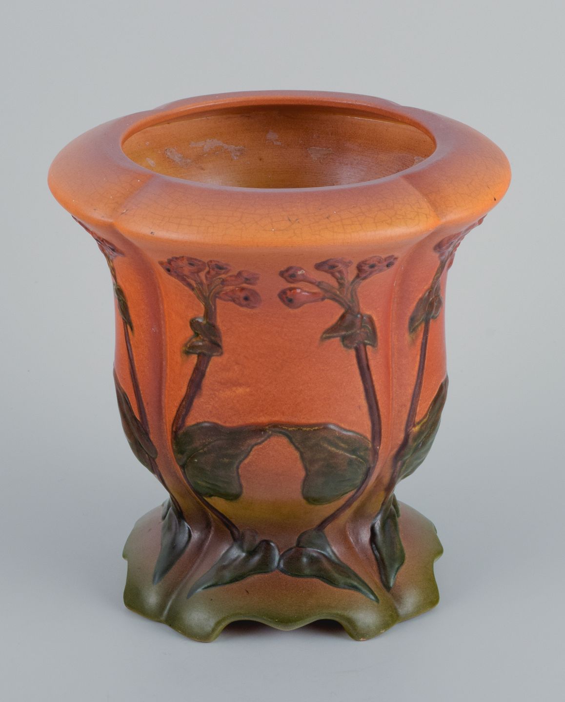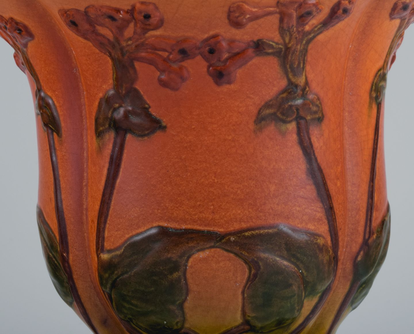 Ipsens Enke, vase med glasur i orange og grønne toner.