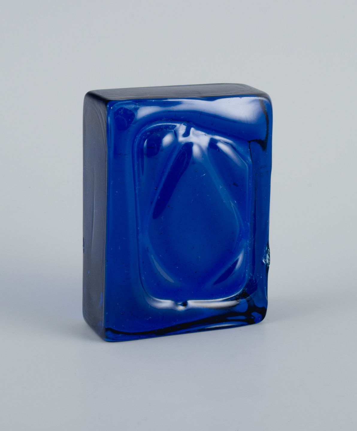 Scandinavian glass artist, three art glass reliefs with abstract motifs. Blue glass. 1960/70s. In perfect condition. Largest measurement: L 11.7 x D 7.5 cm.