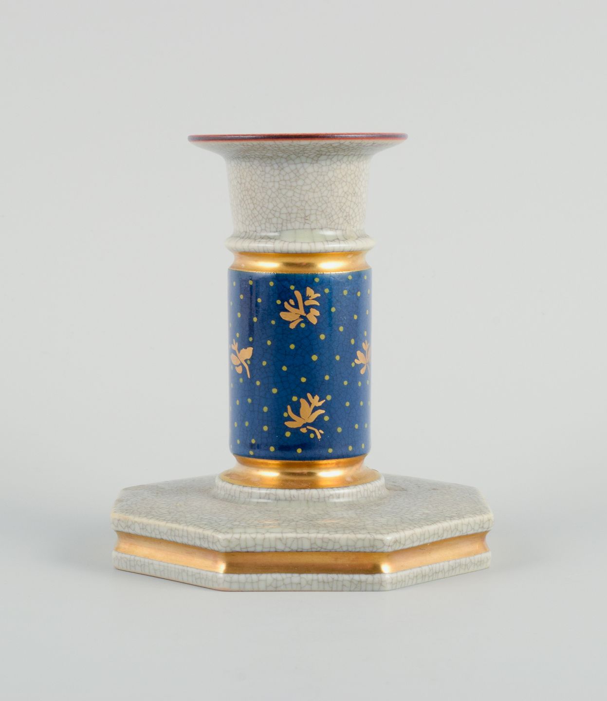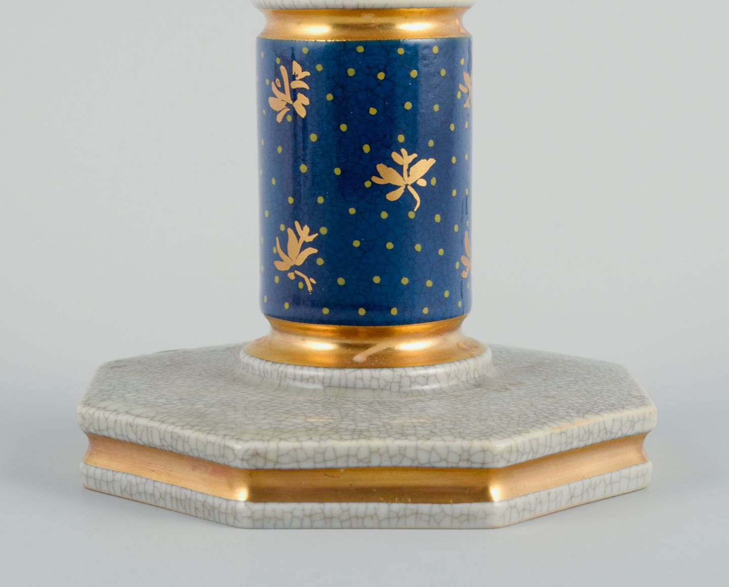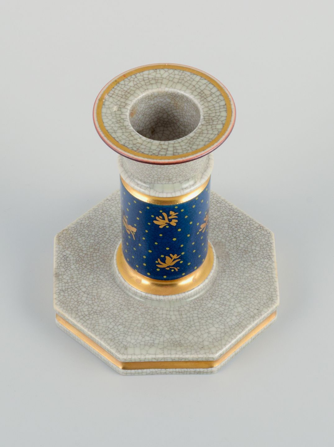 Royal Copenhagen, a pair of candlesticks in cracked porcelain. Hand painted with gold edge. 1936. Marked. First factory quality. In perfect condition. Dimensions: H 10.5 x D 10.0 cm.