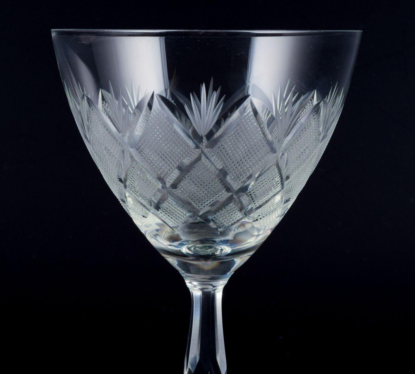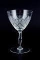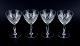 Wien Antik, Lyngby Glas, fire rødvinsglas i klart glas. Facetslebet stilk og krydsslebet kumme. 1930/40’erne. I perfekt stand. Mål: D 8,5 x H 13,0 cm.