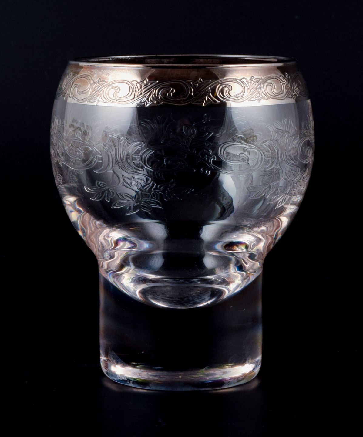 Murano, Italien, seks mundblæste og graverede ølglas med sølvkant.