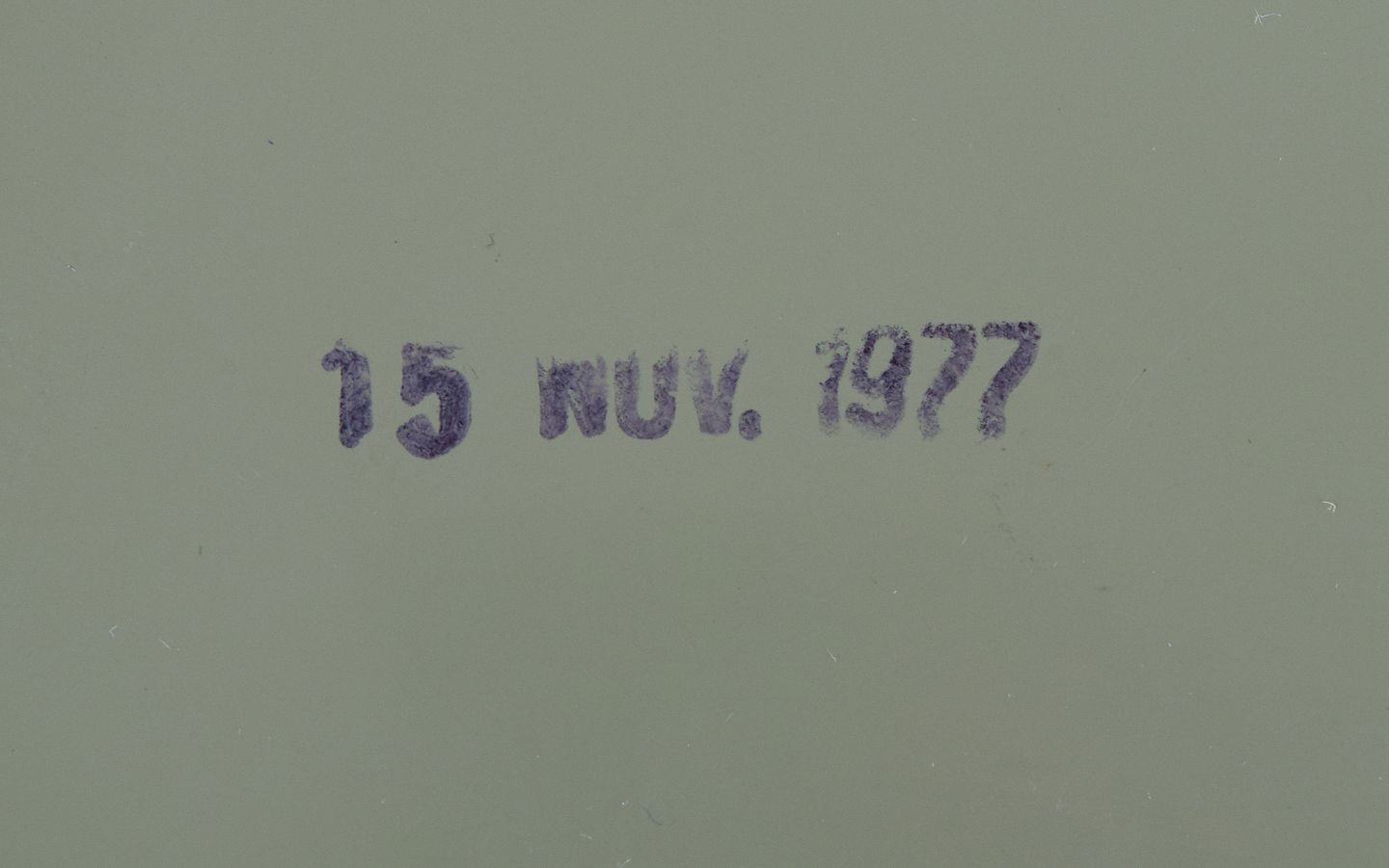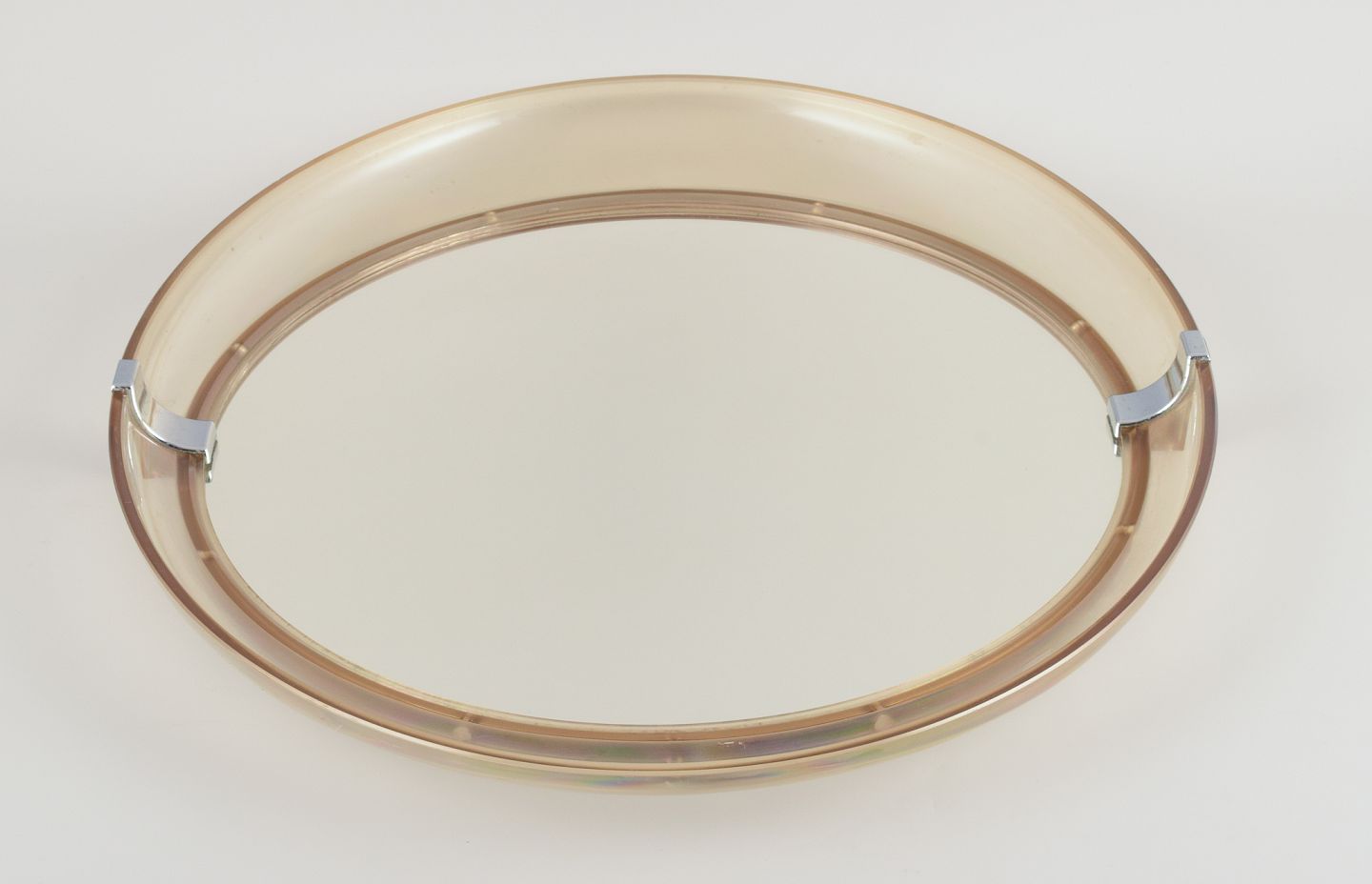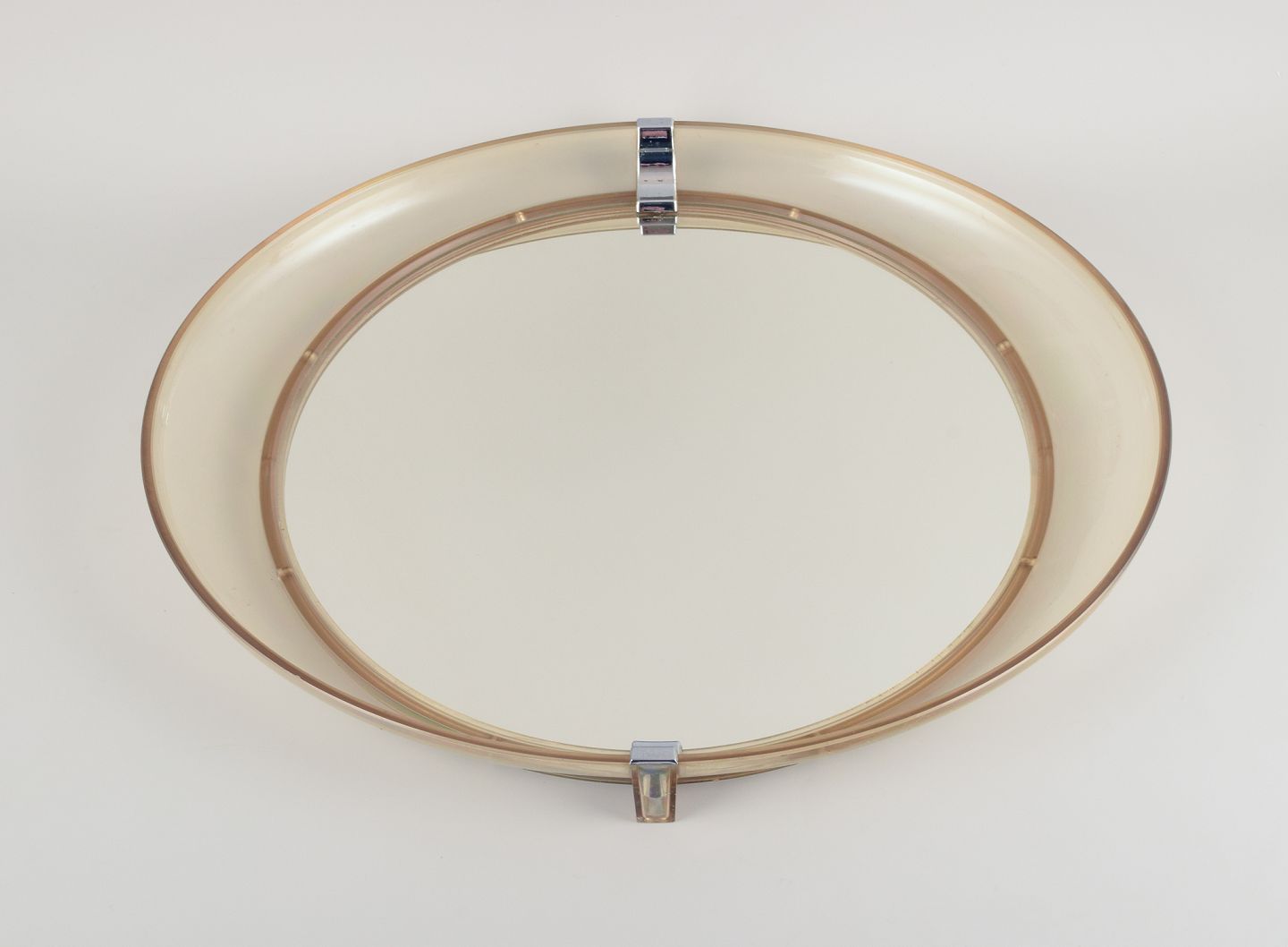 Max Ingrand for Fontana Arte. Wall mirror. Produced 1977. Designed in the early 1960s. In excellent condition. Dimensions mirror: W 36.5 x H 37.0 cm. Total dimensions: W 43.5 x H 50.0 cm.