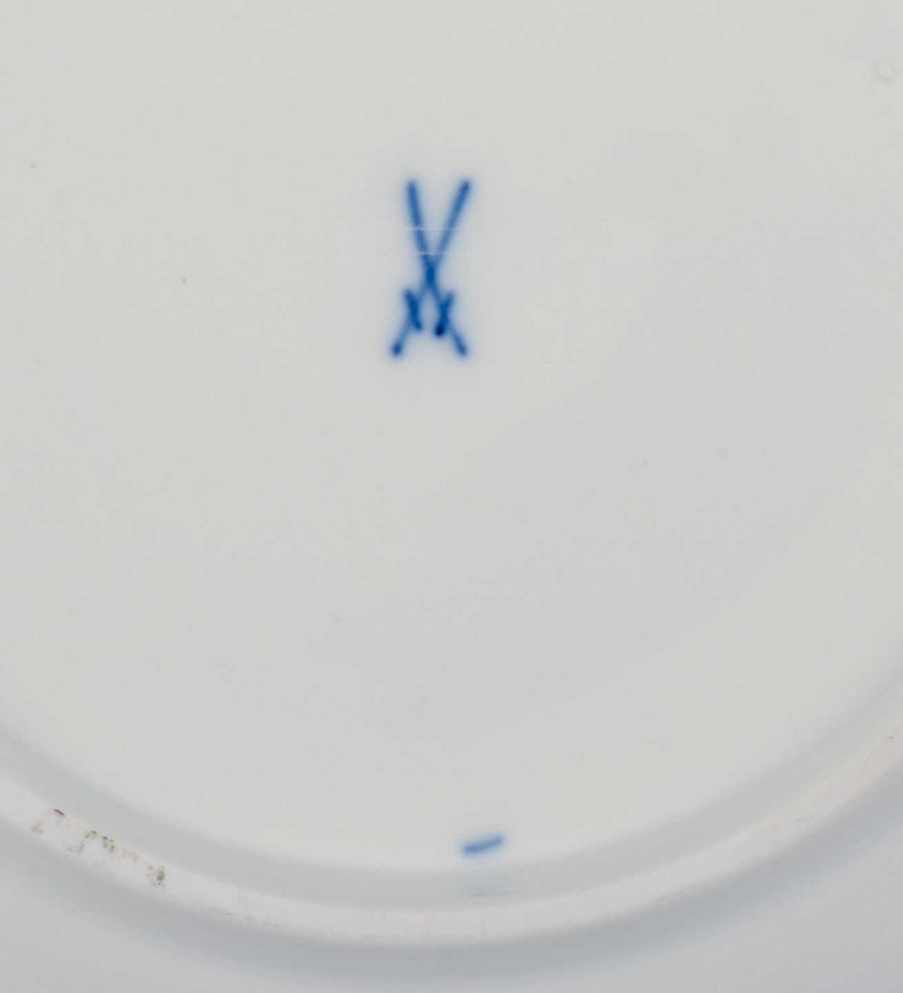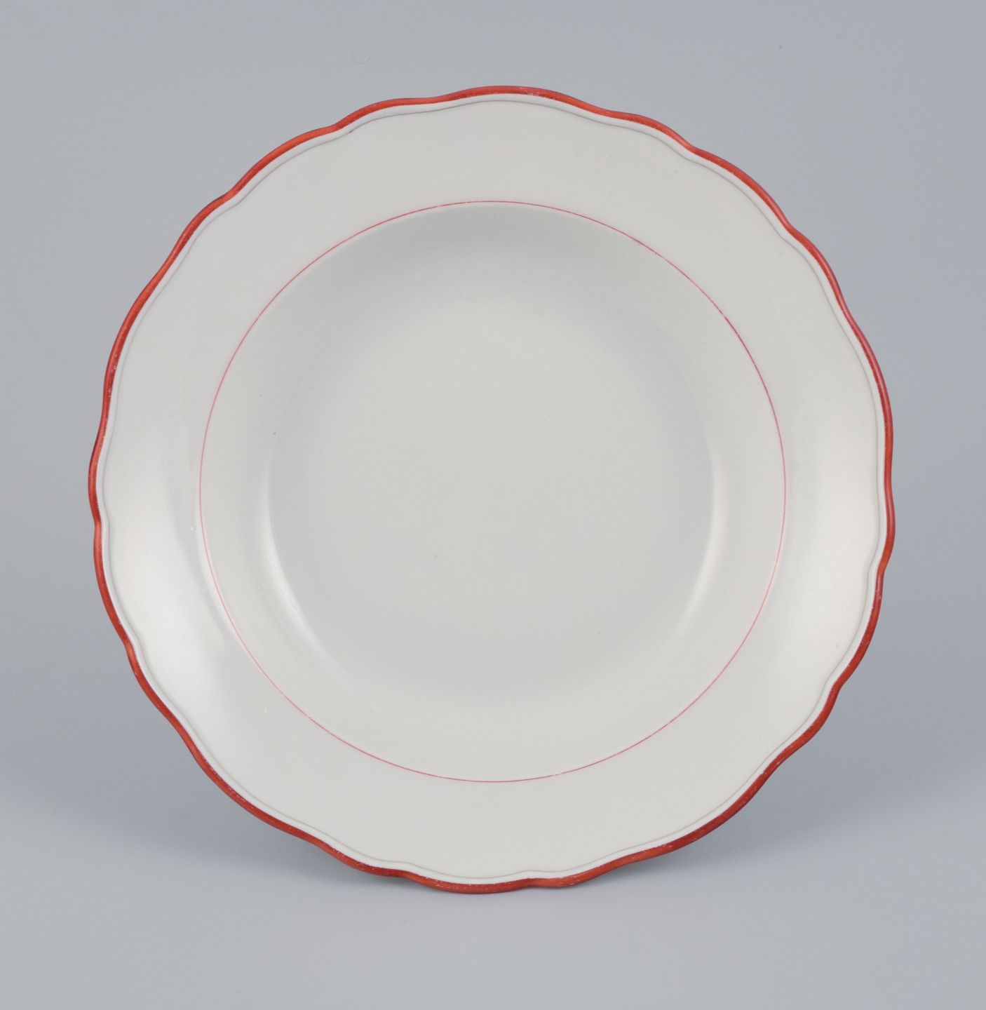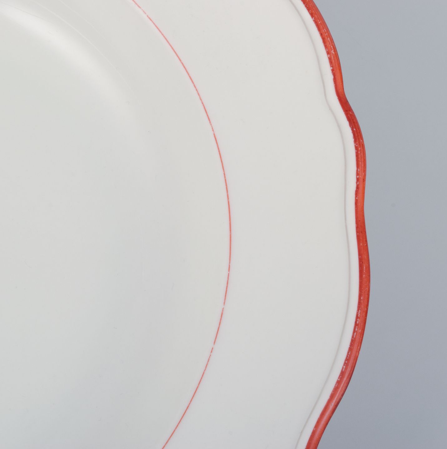 Meissen, tre dybe tallerkner med orangerød dekoration.