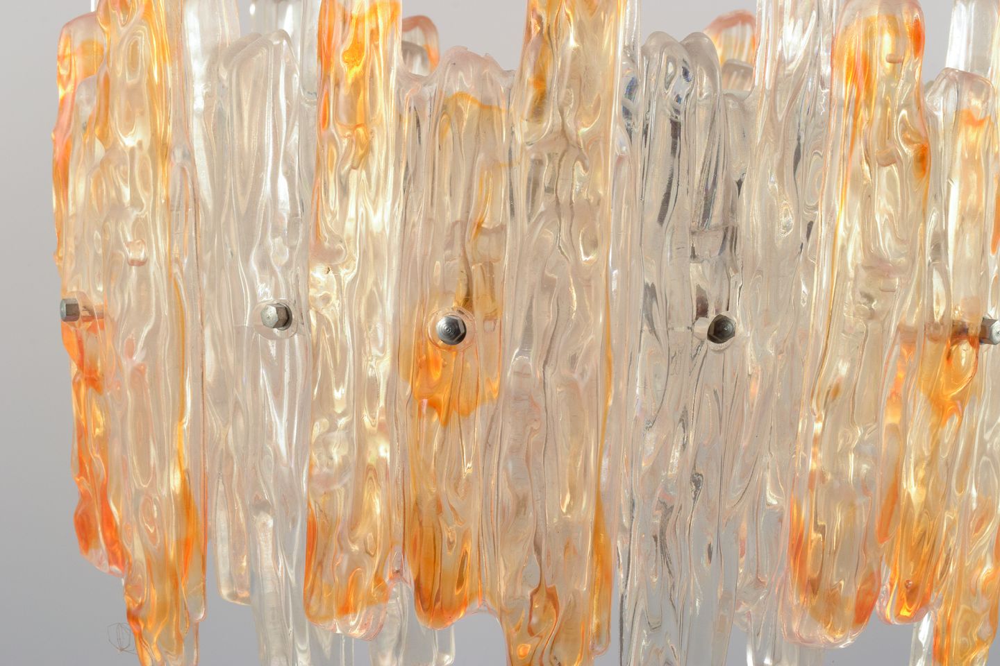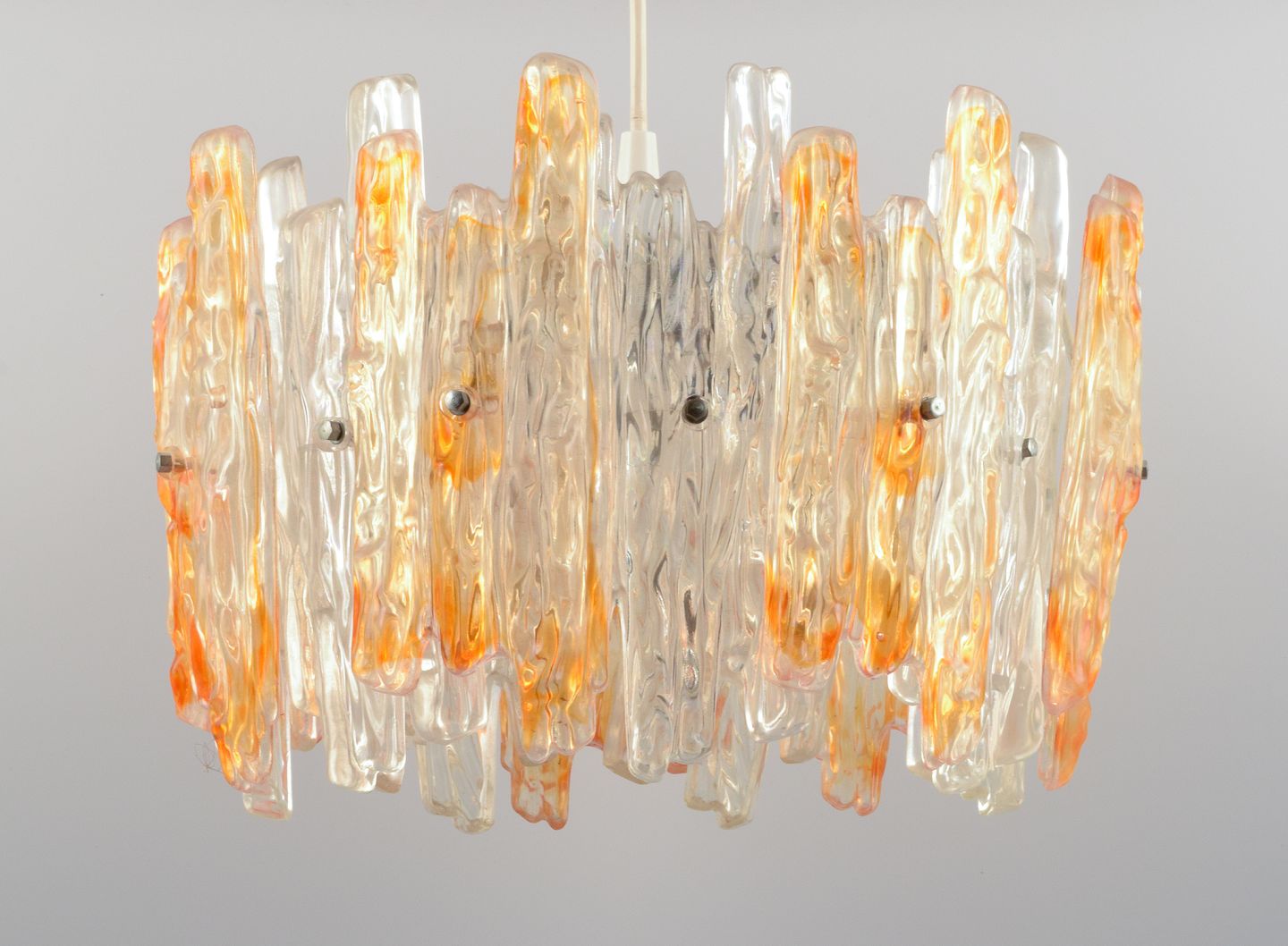 Franken Kalmar, Tyskland. Moderne loftslampe i orange og klart akrylglas. 1970´erne. I flot stand. Mål: D 39,0 x H 25,0 (uden fatning).