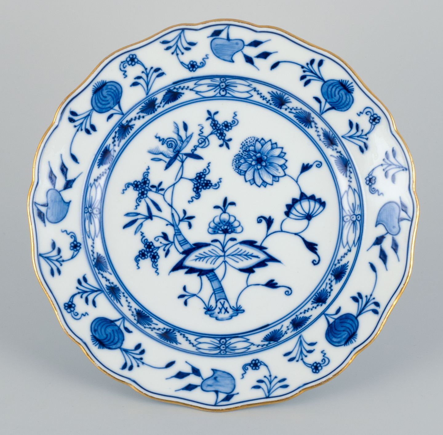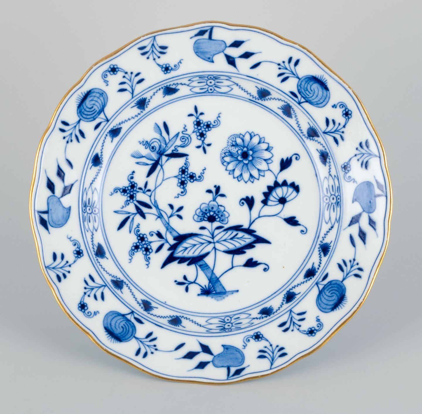 Meissen, Tyskland, fem håndmalet løgmønstret middagstallerkner med guldkant. Tidligt 1900-tallet. I perfekt stand. Første sortering. Stemplet. Mål: D 24,5 x 3,5 cm.