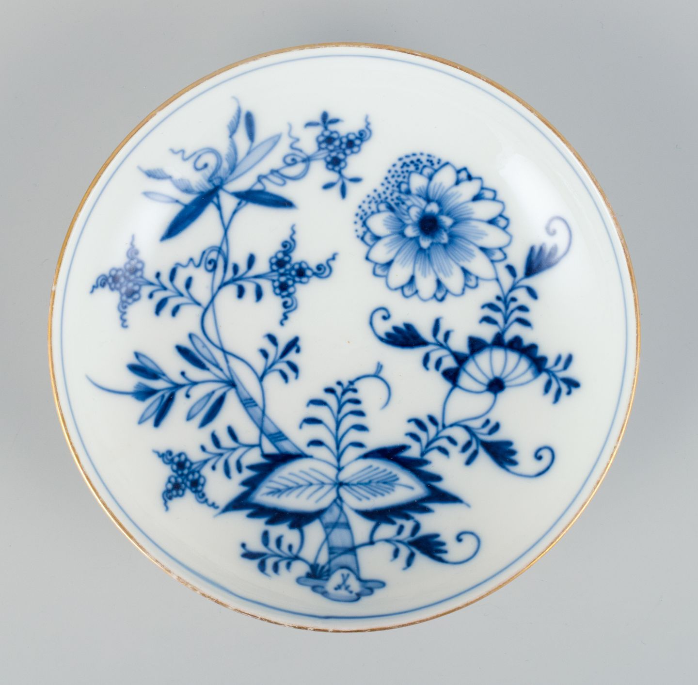 Meissen, Tyskland, to håndmalet skåle, løgmønstret med guldkant.