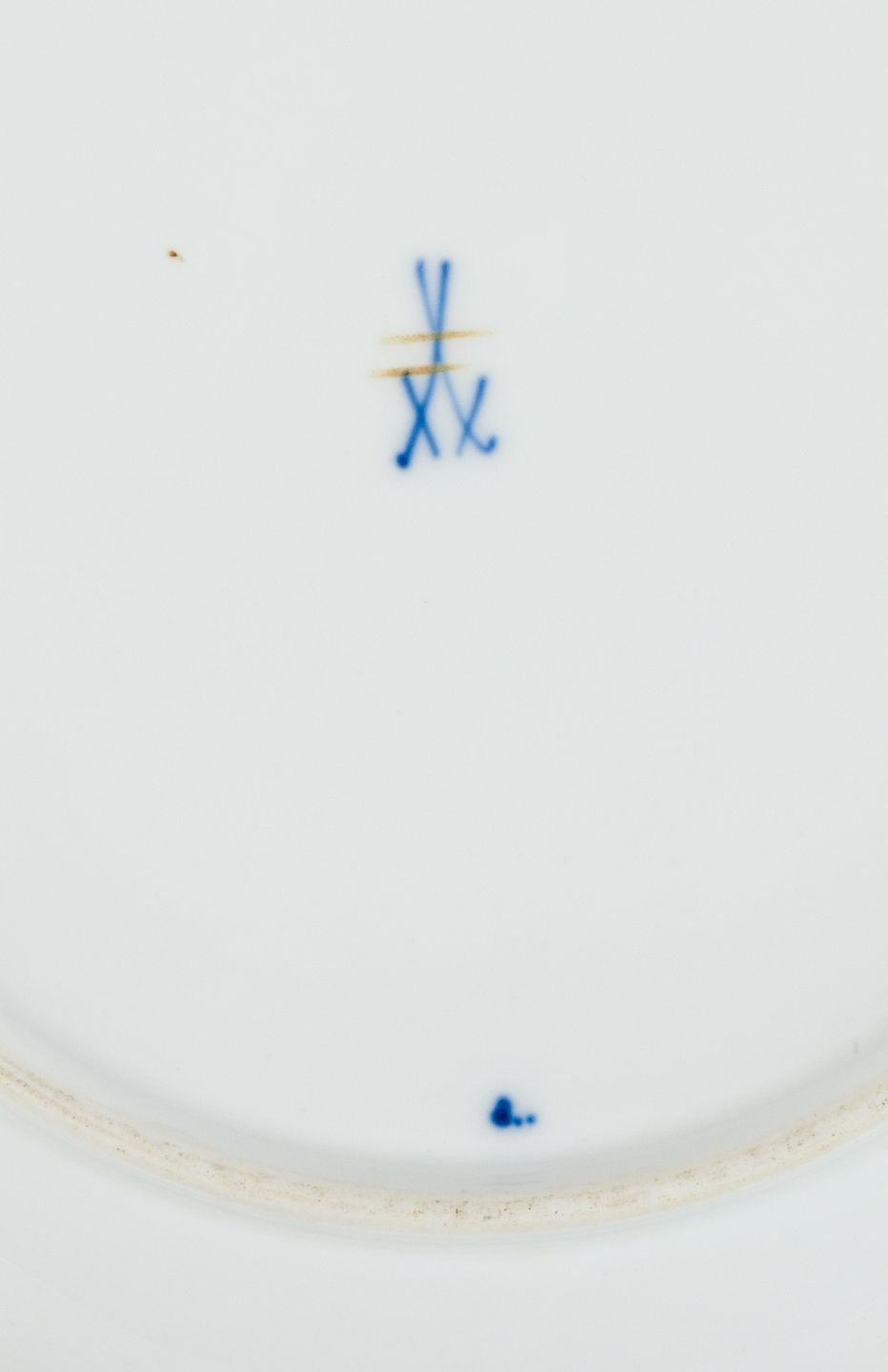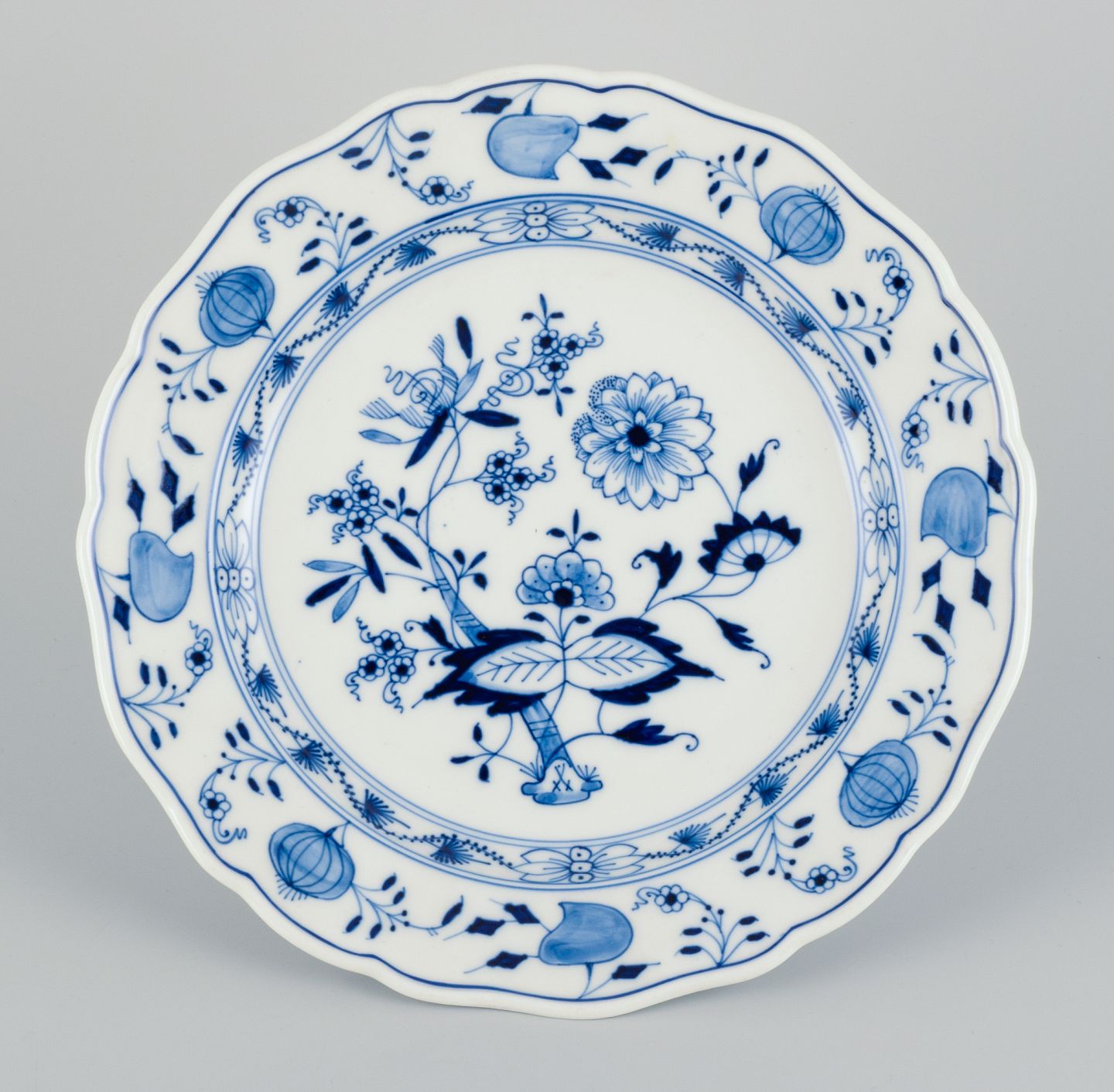 Meissen, Tyskland, løgmønstret, et sæt på tre håndmalet middagstallerkner.