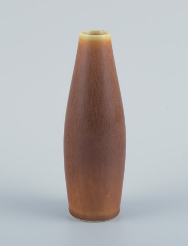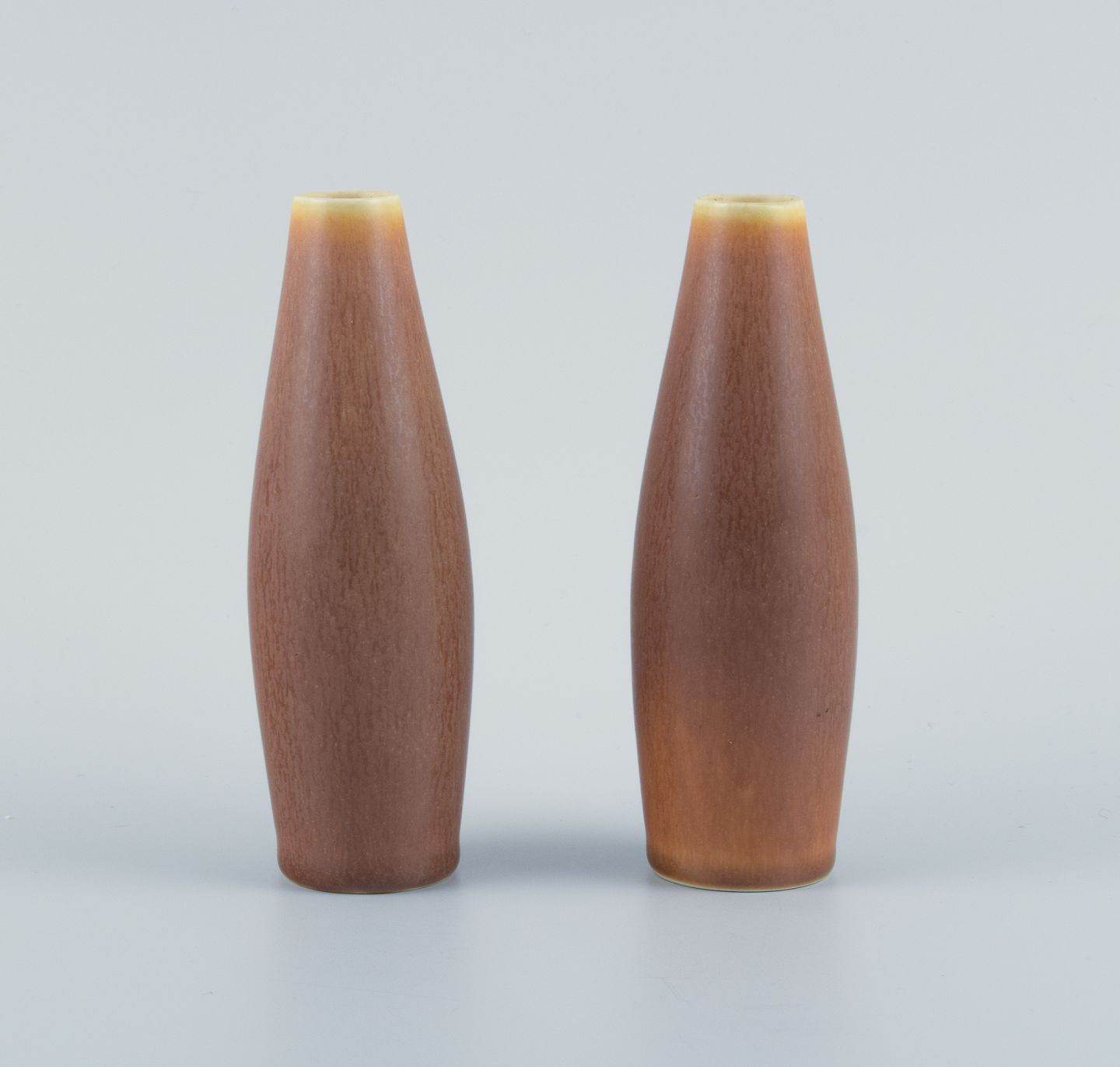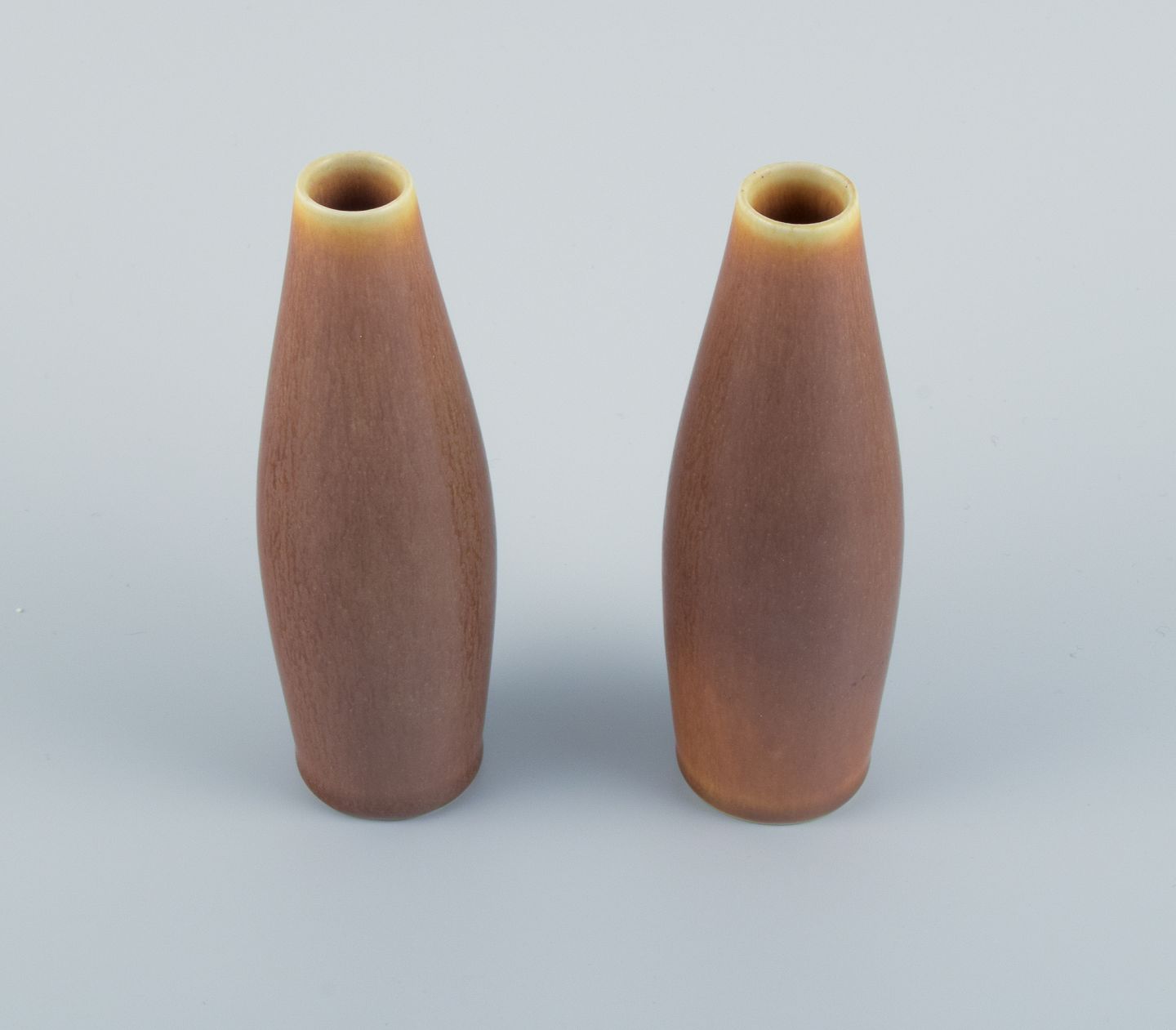 Per Linnemann-Schmidt (1912-1999) for Palshus, Denmark. A pair of ceramic vases with hare fur glaze in shades of brown. Approx. 1970 Marked. Perfect condition. Dimensions: H 13.0 x D 4.5 cm.