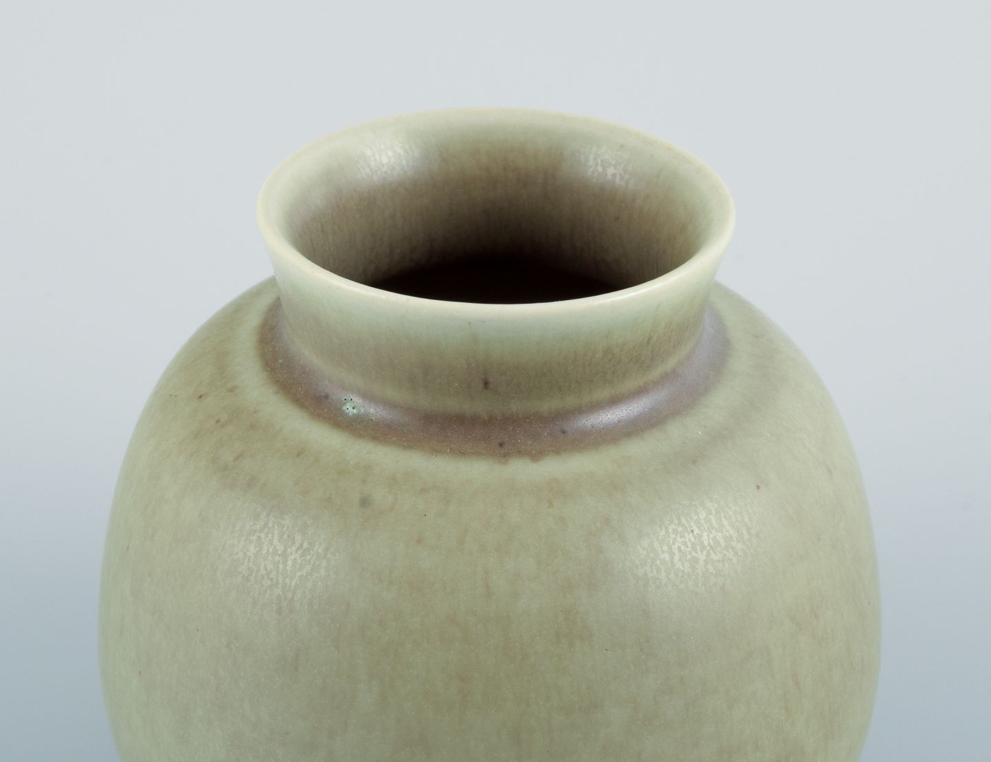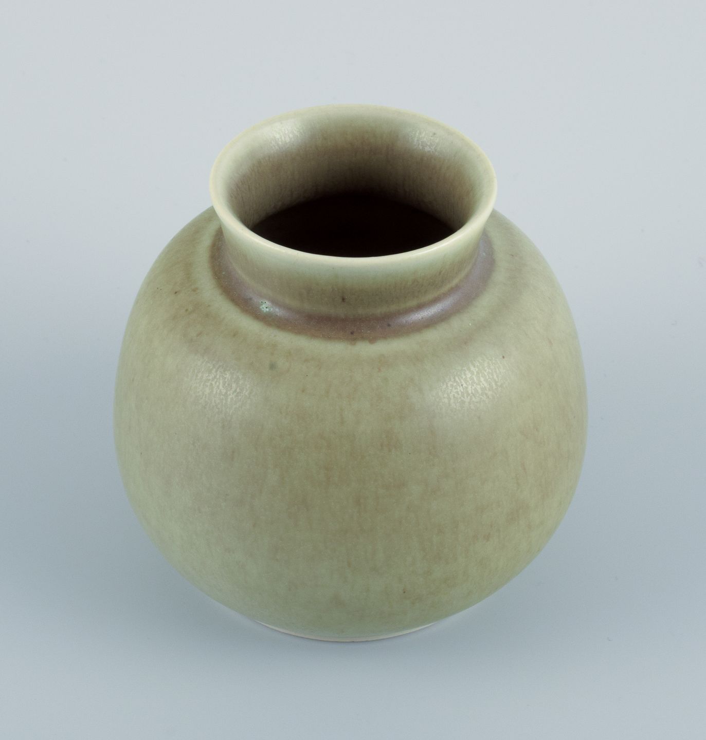 Per Linnemann-Schmidt (1912-1999) for Palshus, Denmark. Ceramic vase in hare fur glaze with green tones. Approx. 1970. Marked. Im perfect condition. Dimensions: H 8.8 x D 8.5 cm.