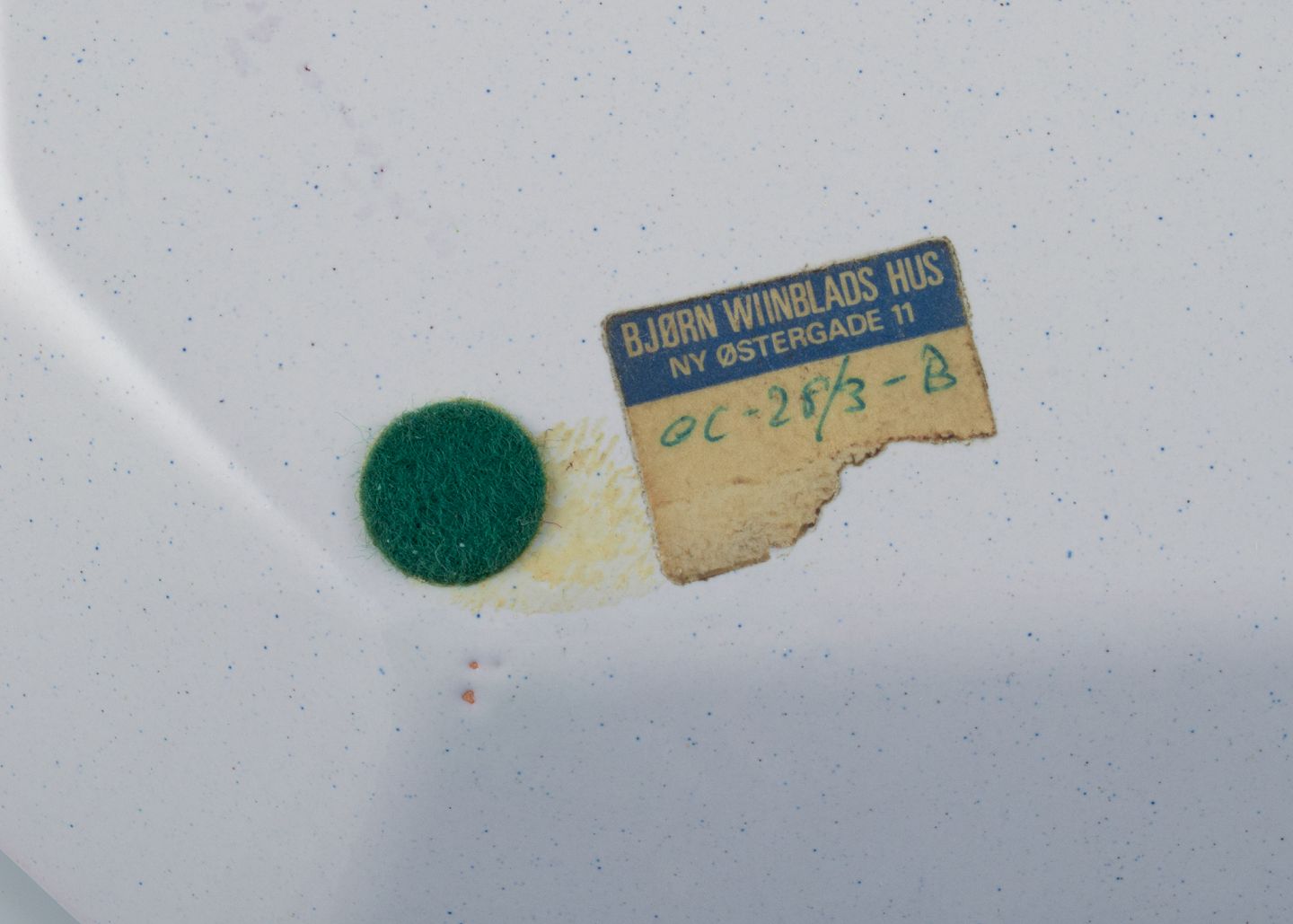 Bjørn Wiinblad, Det Blå Hus (The Blue House), square unique bowl with motif of woman and bird.
