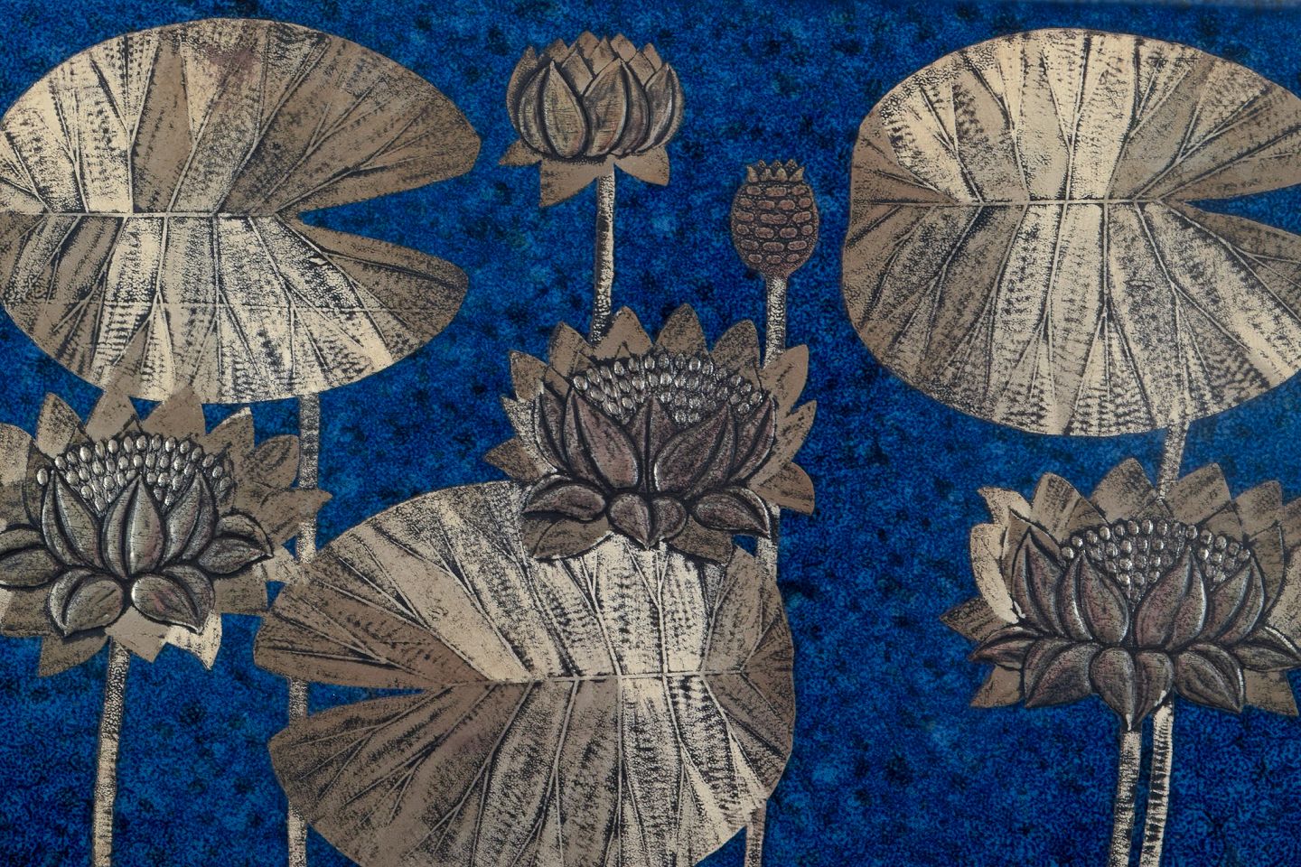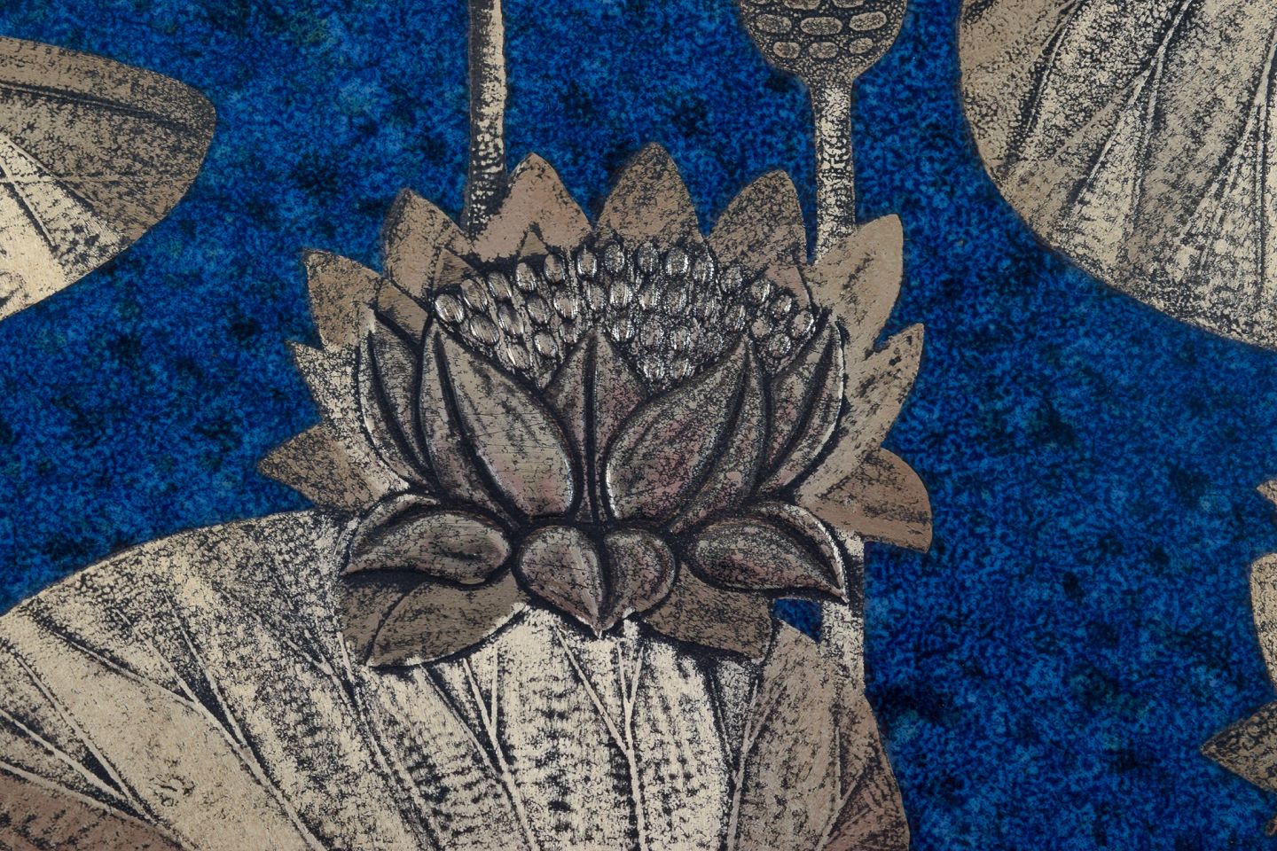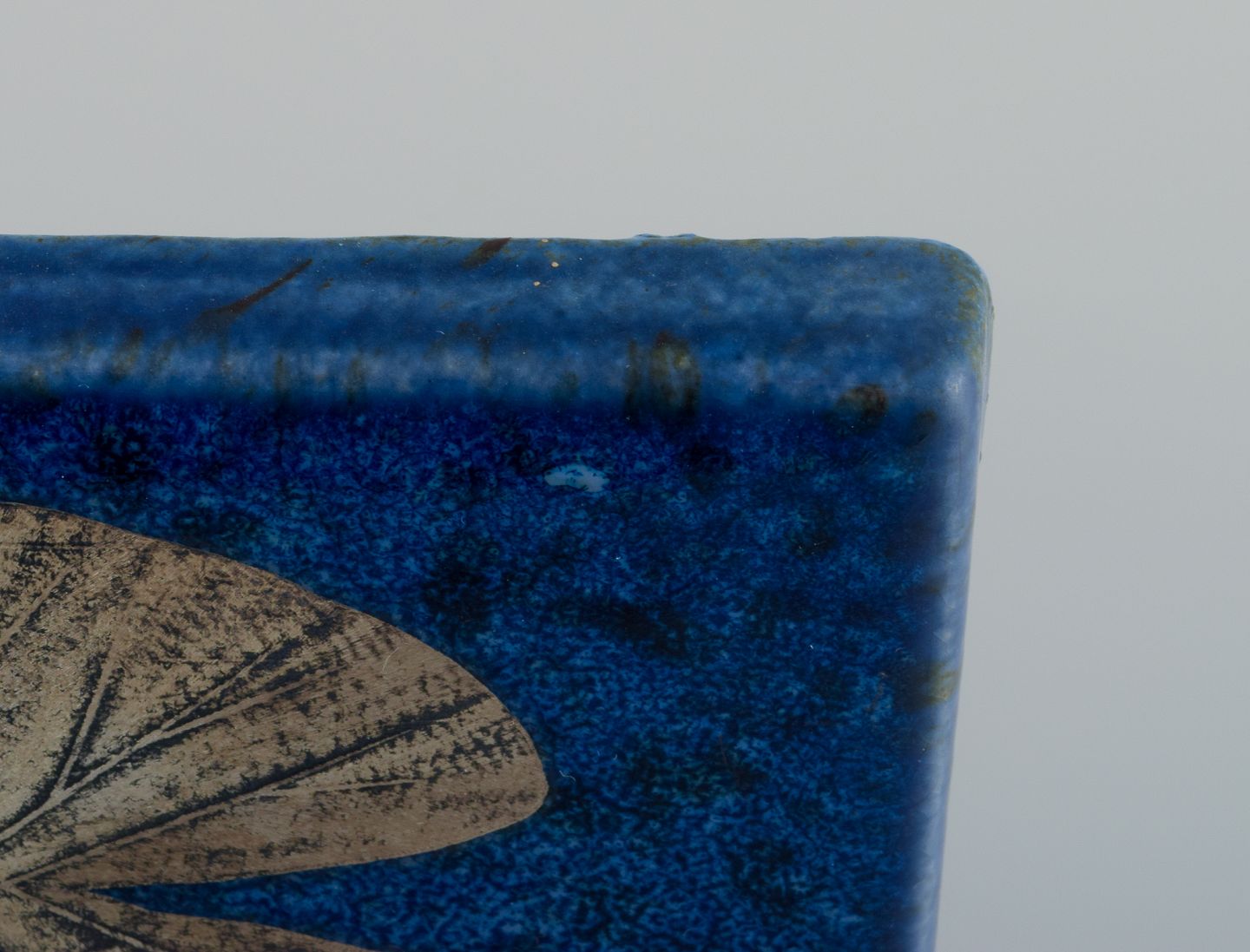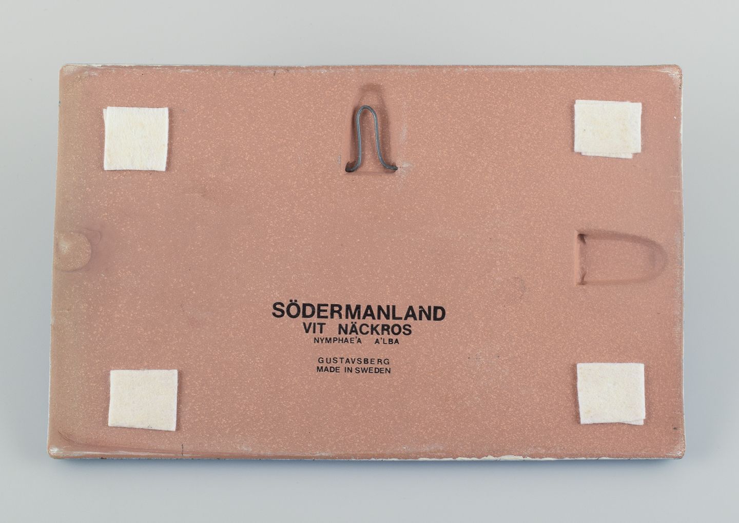 Heinz Erret (1920-2003) for Gustavsberg, ”Vit näckros , Södermanland”, vægplakette i glaseret keramik med sølvindlæg i form af blomster. 1976. Perfekt stand. Stemplet. Mål: L 34,0 x B 21,5 x D 1,3 cm.