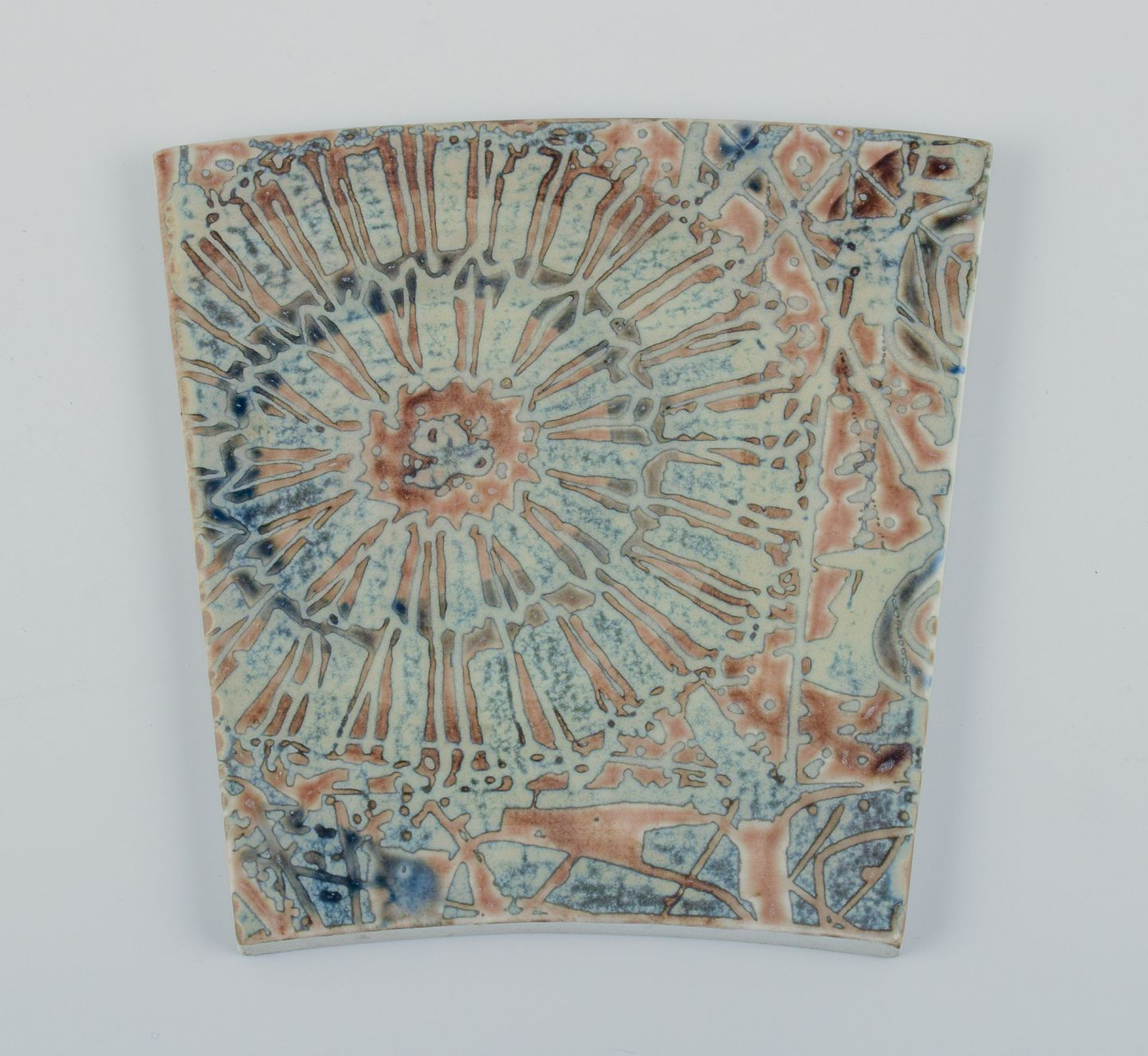 Royal Copenhagen, seks Baca fajancekakler med mønstret glasur i brun, blå, grøn og sandfarver. Model 869/3813. 1970'erne. I perfekt stand. Stemplet. Første sortering. Mål: 14,0 x 16,0 cm.