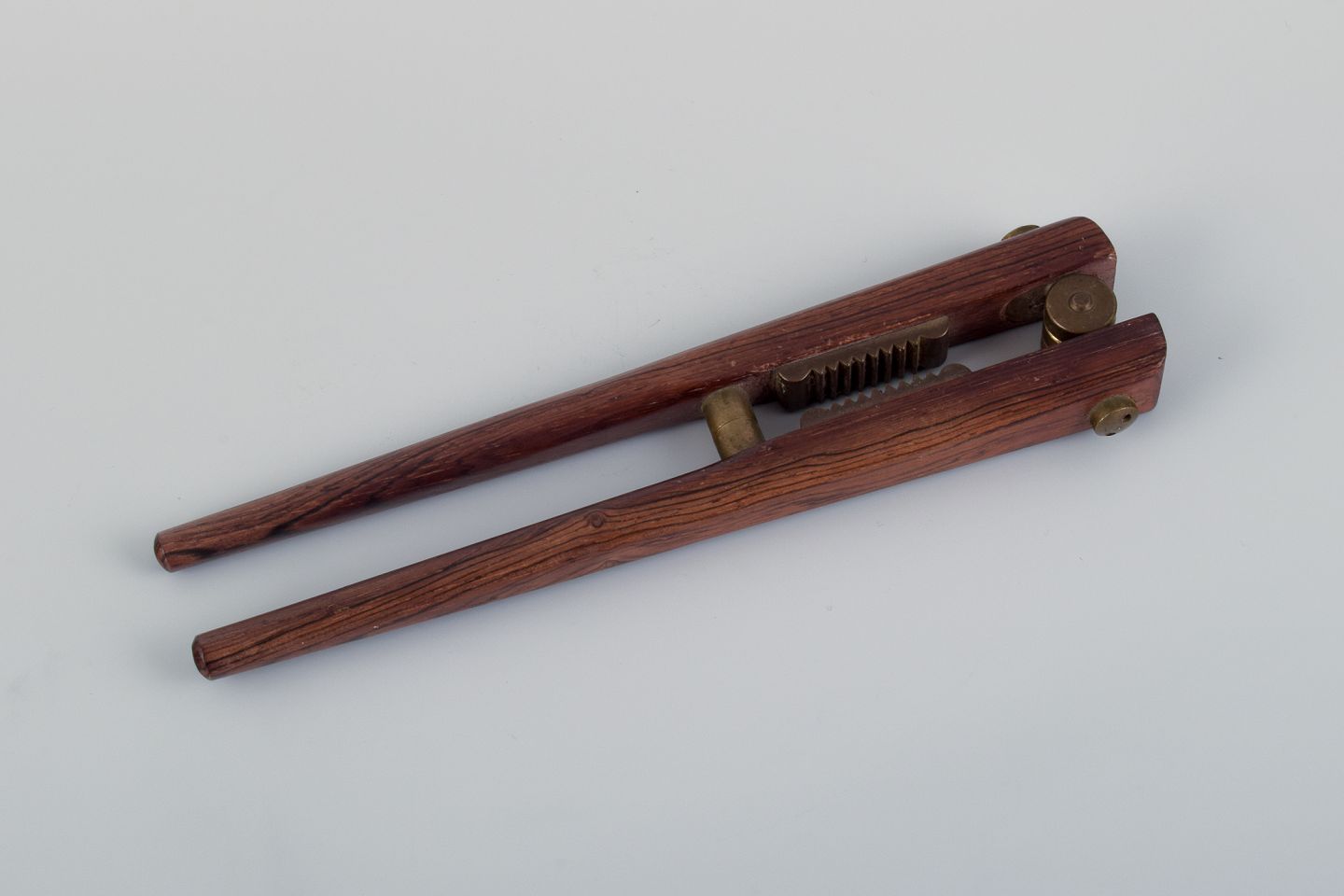 To nøddeknækkere i dansk design, messing og teak. Ca. 1960’erne. I flot stand. Den længste måler: L 20,5 cm.