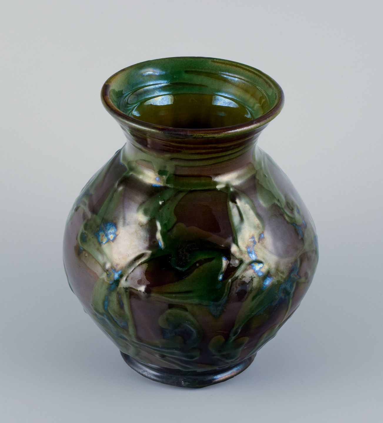 Glasur i grønne og brune nuancer.