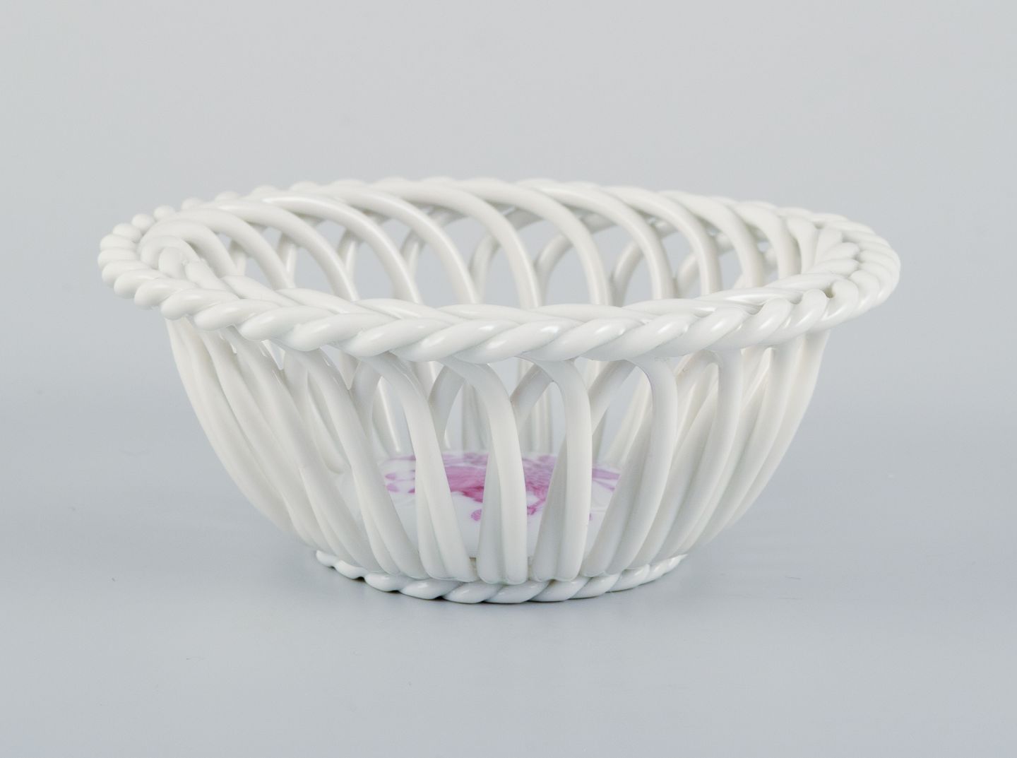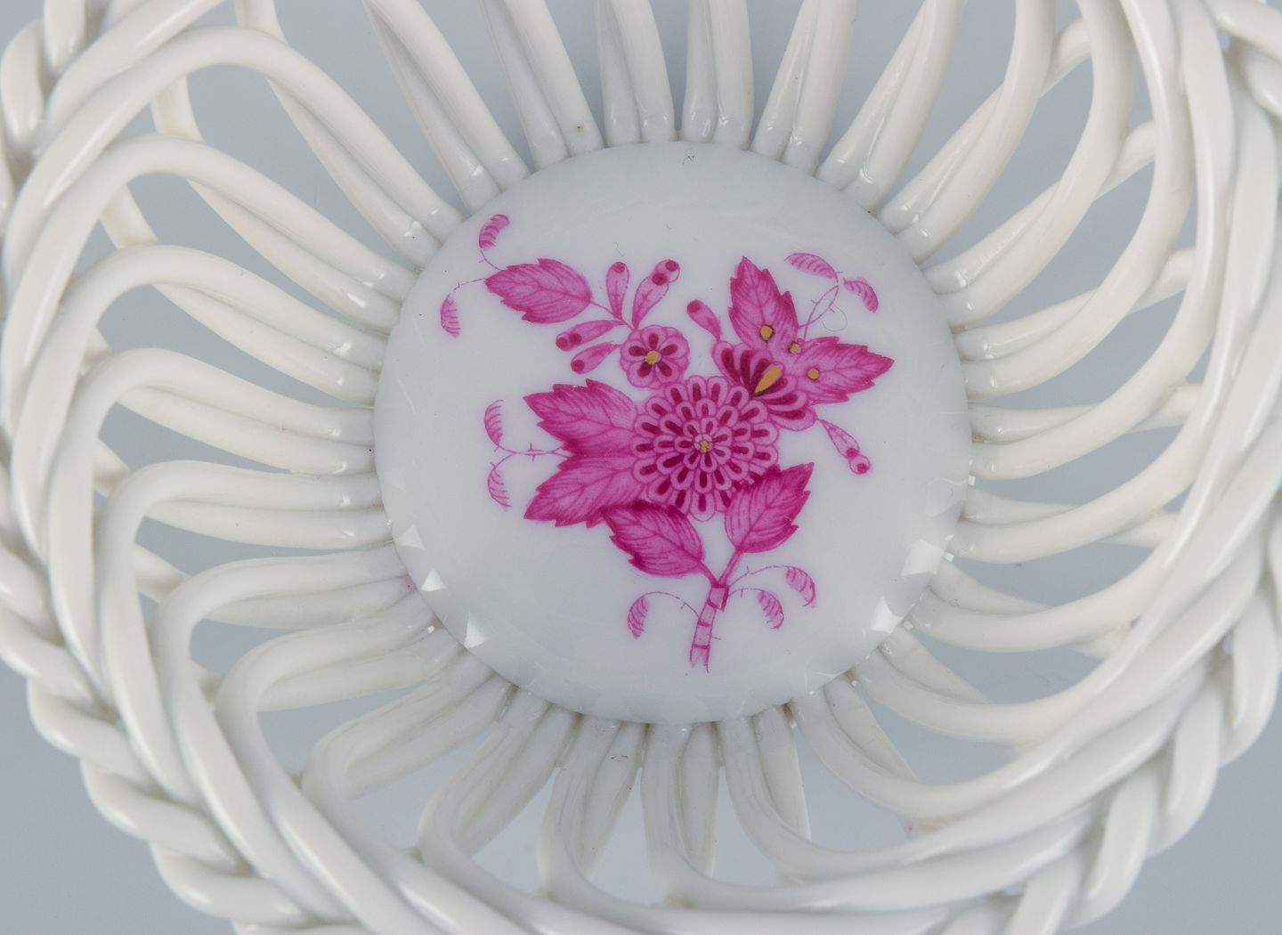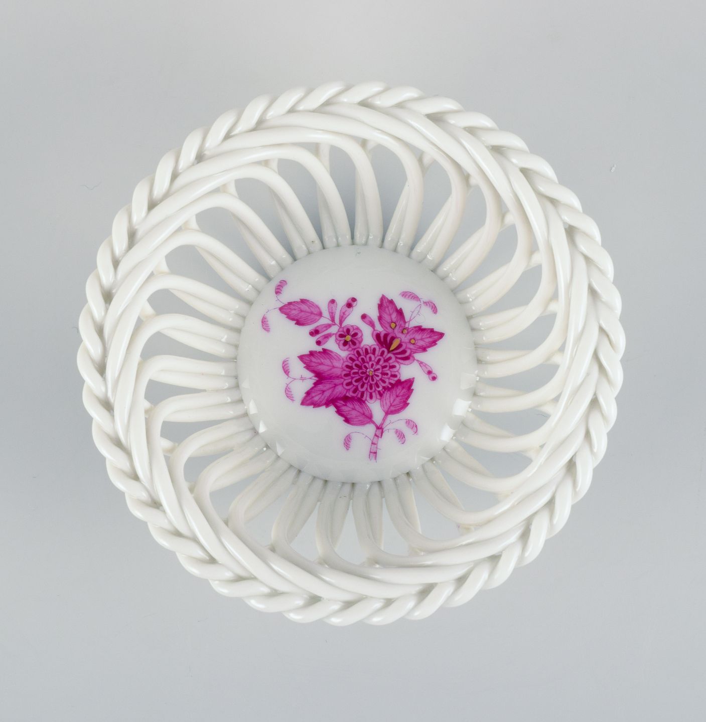 Herend, Ungarn, Chinese Bouquet Raspberry, lille skål med fletværk samt lille vase. Midt 1900-tallet. Perfekt stand. Stemplet. Vase: H 12,0 x D 6,5 cm.