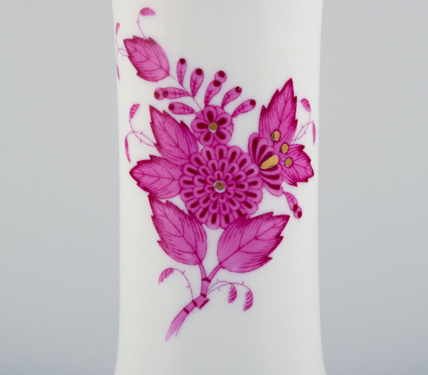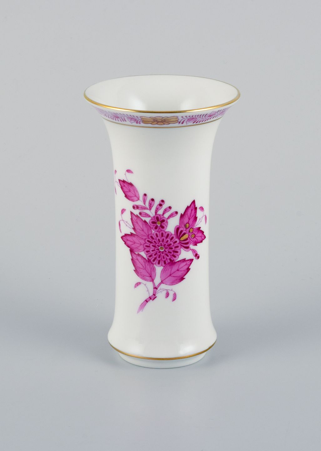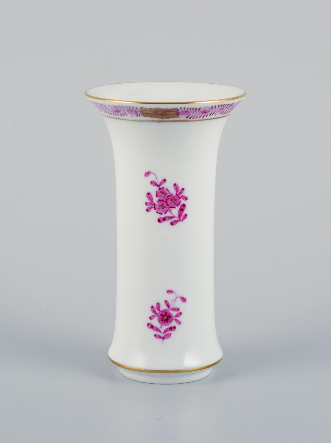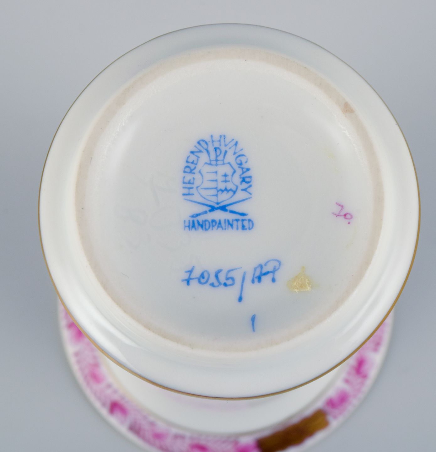 Herend, Ungarn, Chinese Bouquet Raspberry, lille skål med fletværk samt lille vase. Midt 1900-tallet. Perfekt stand. Stemplet. Vase: H 12,0 x D 6,5 cm.