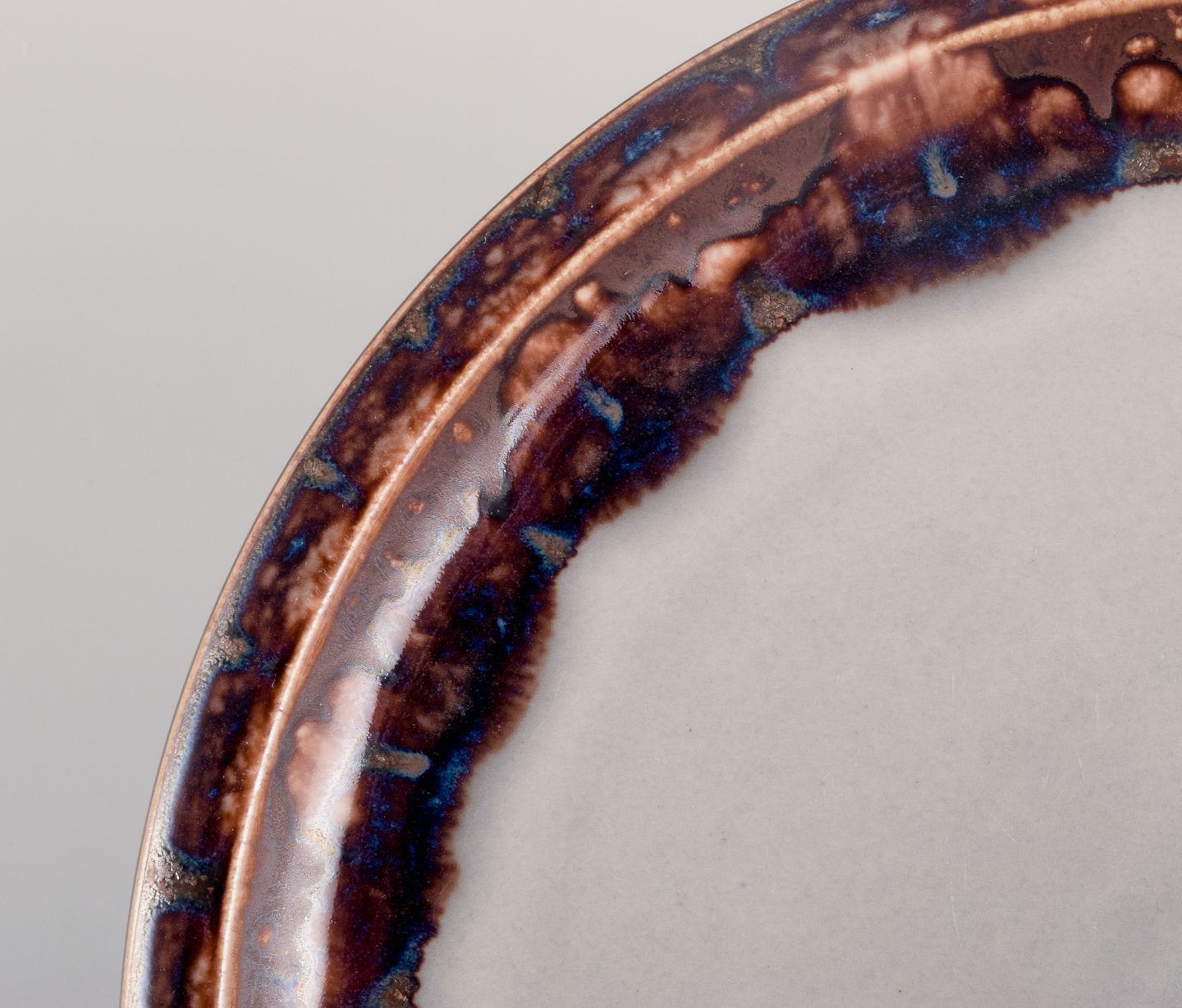 Jens Harald Quistgaard for Bing & Grøndahl, Mexico retrostel, seks middagstallerkner i stentøj. 1970’erne. Modelnummer: 325 I flot stand. Stemplet. Første sortering. Mål: D 24,0 cm