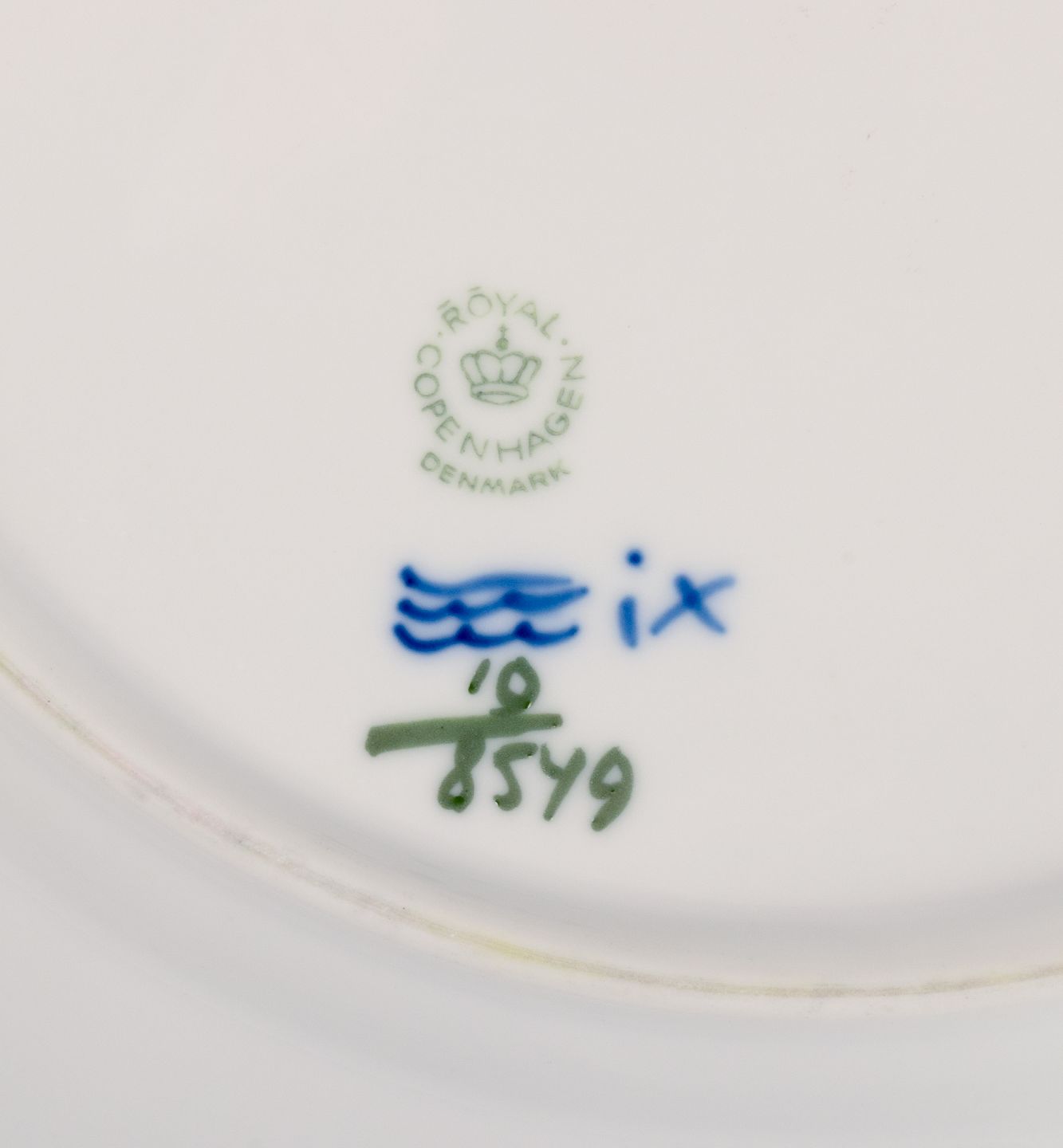 Royal Copenhagen, Blå Blomst Kantet, fem middagstallerkner. Modelnummer: 10/8549 1980/90'erne. Første sortering. I perfekt stand. Stemplet. Mål: D 26,0 cm. x H 3,5 cm.