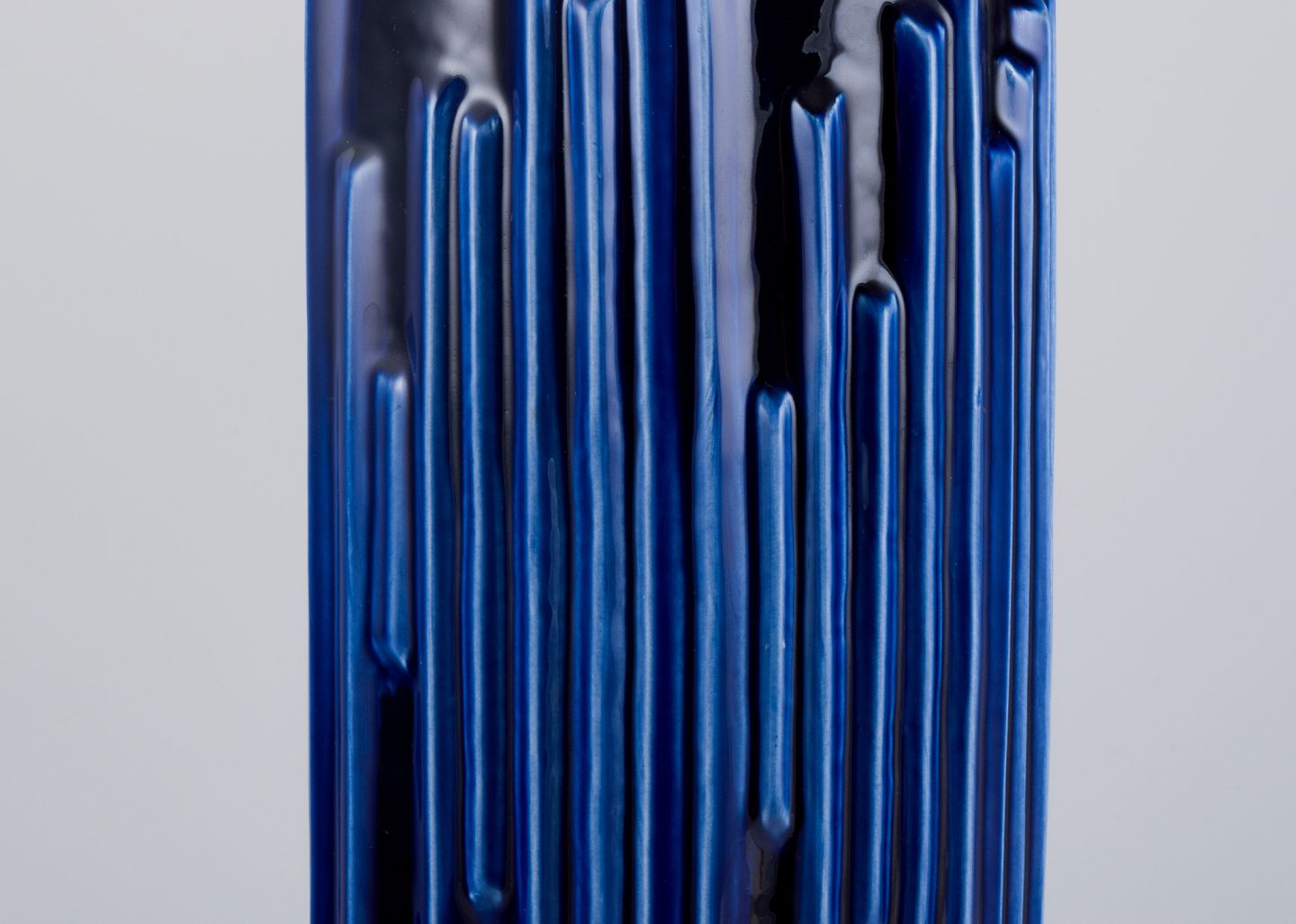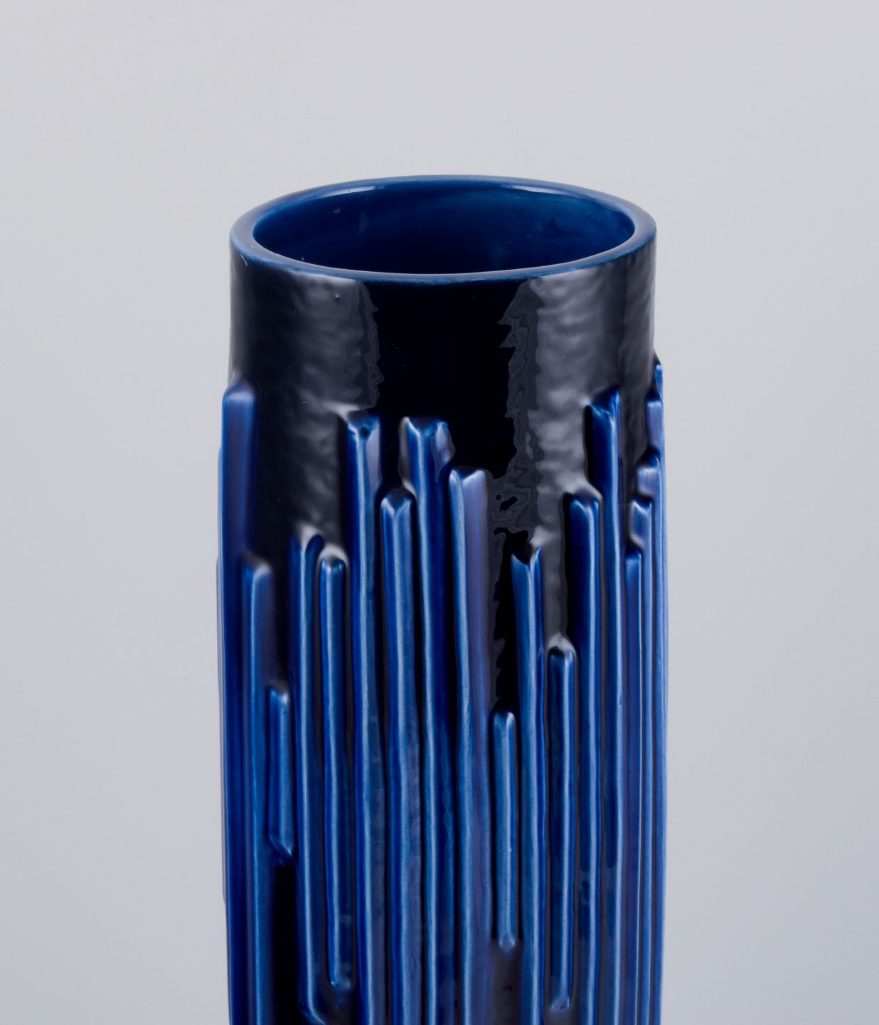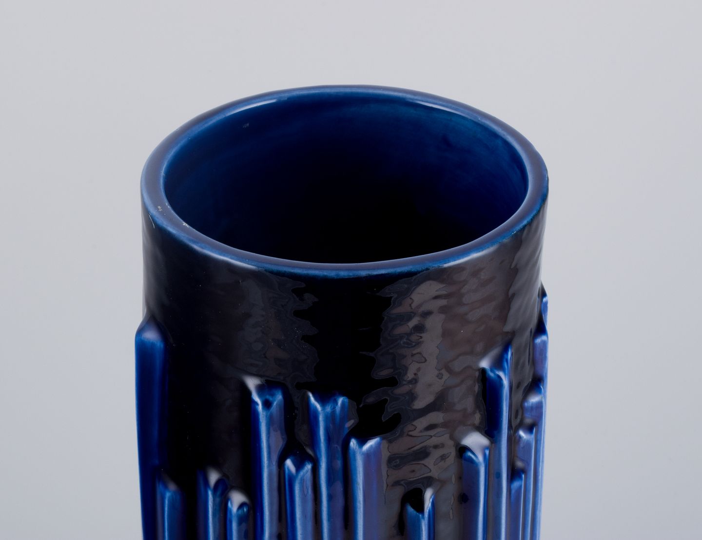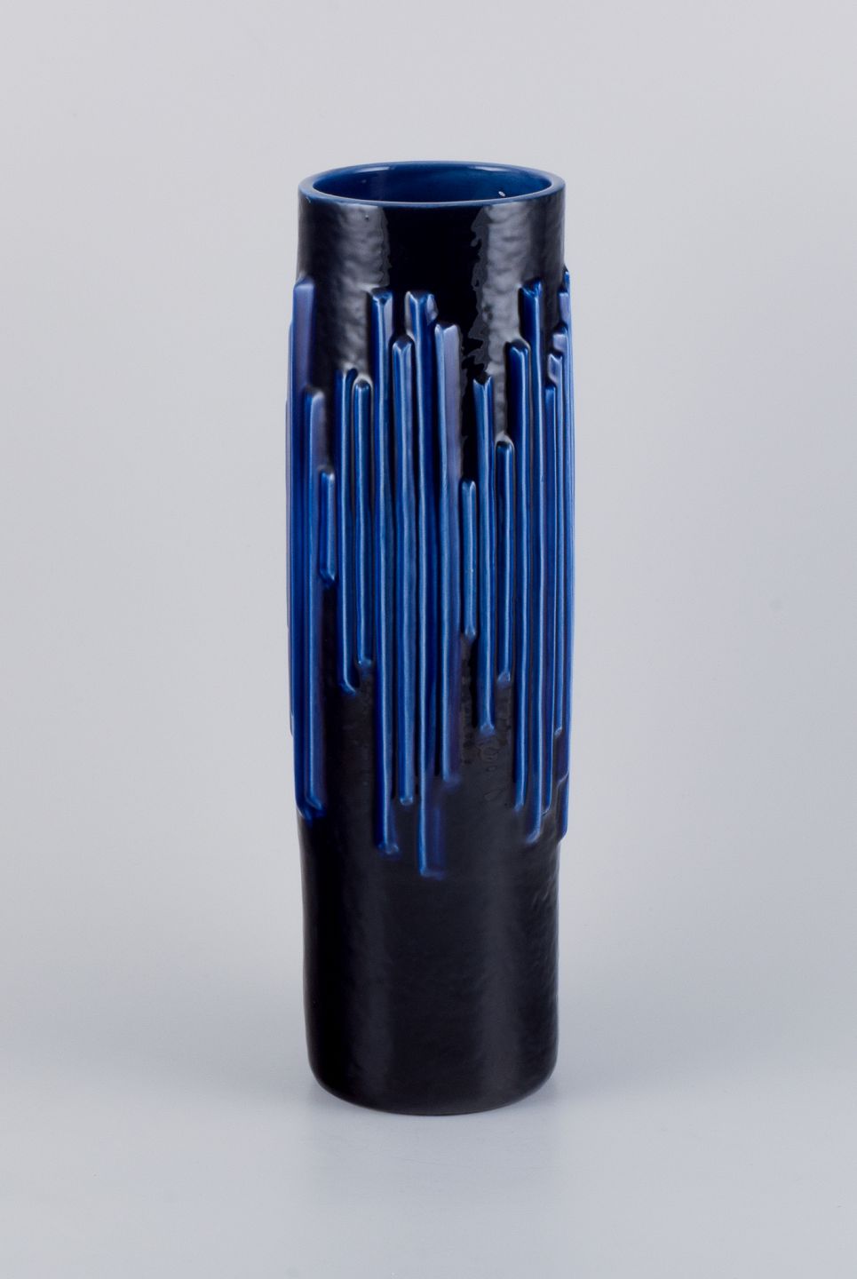 Carl Harry Stålhane (1920-1990) for Rörstrand. Stor "Andalusia" vase i glaseret keramik. Smuk glasur i dybe blå nuancer. 1960'erne. I flot stand. Stemplet. Måler: H 44,0 cm. x D 14,0 cm.