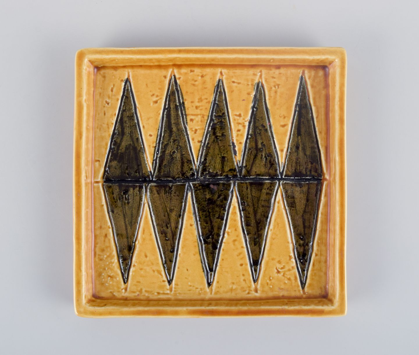 Rörstrand, kvadratisk keramikfad, Harlekin serien. 1960’erne. Stemplet. Første sortering. Perfekt stand. Mål: D 16,7 cm. x H 2,0 cm.