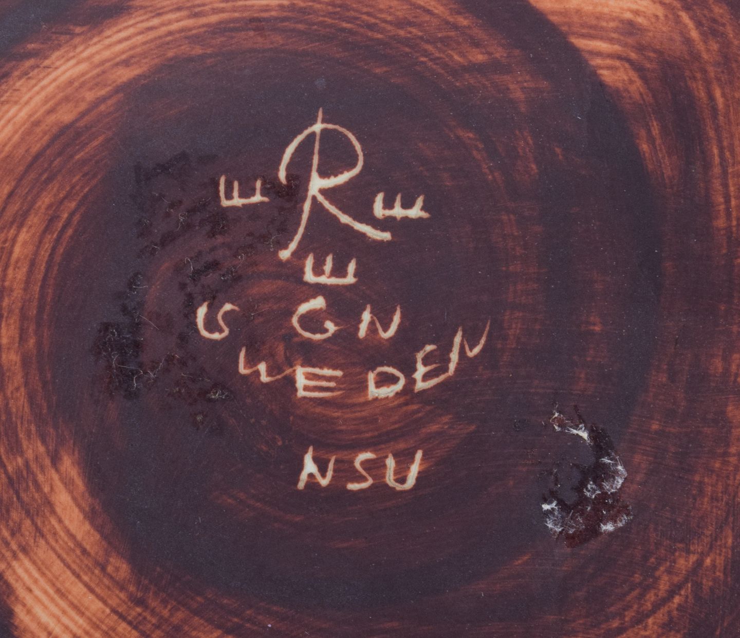 Gunnar Nylund for Rörstrand, keramikskål med abstrakt motiv og glasur i grønblå nuancer.