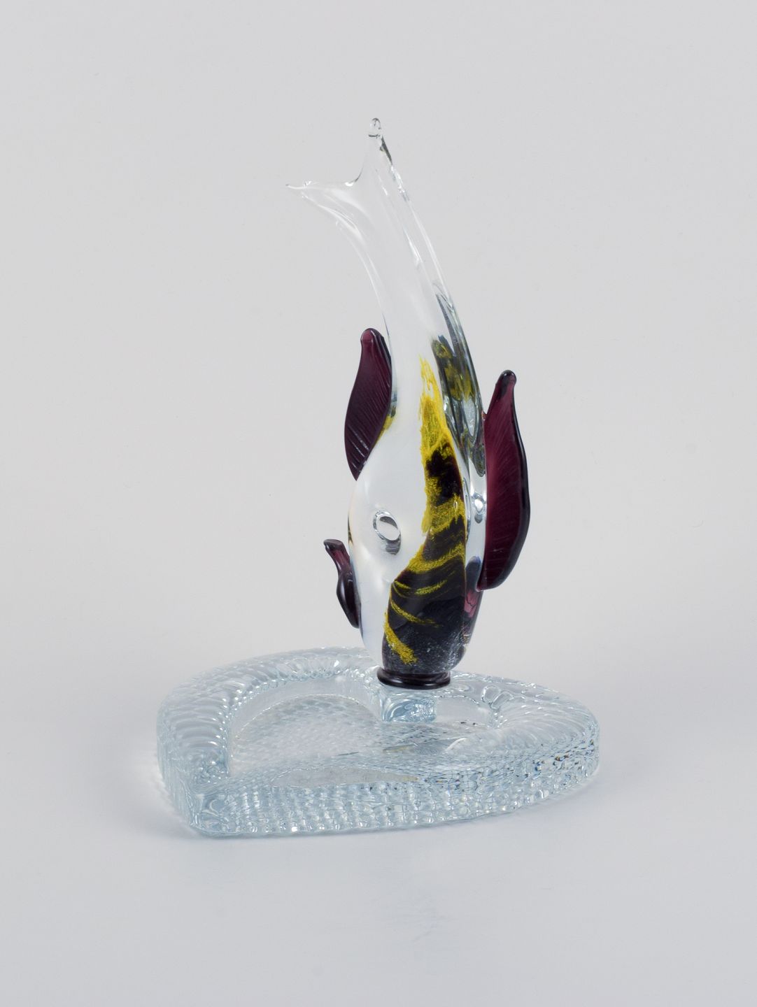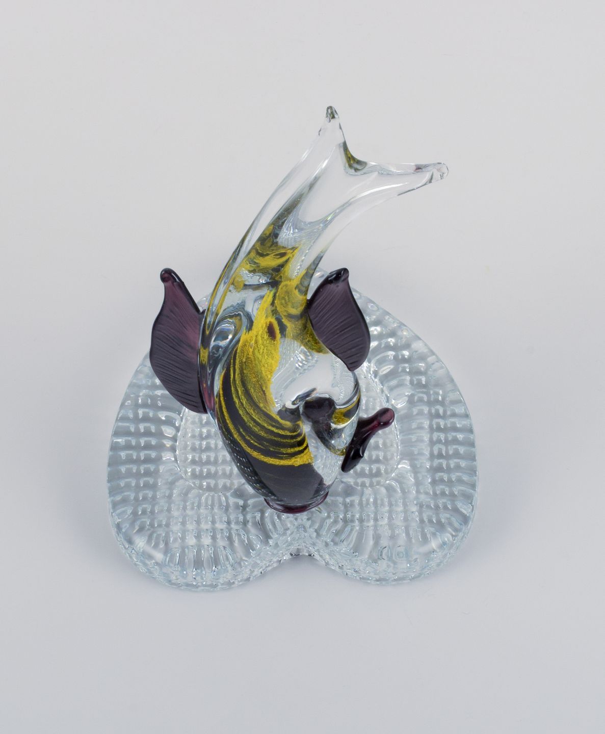Heart-shaped dish with fish in art glass. 1970s/1980s. In perfect condition. Dimensions: H 22.0 cm x D 14.5 cm.