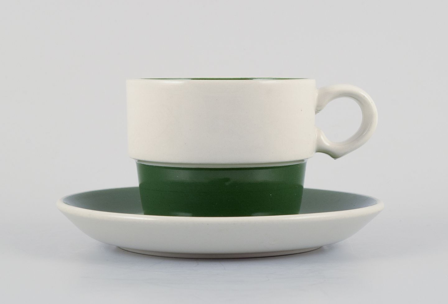 Stig Lindberg for Gustavsberg, Sverige, et sæt på fire ”Bodega” kaffekopper med tilhørende underkopper. Stentøj.