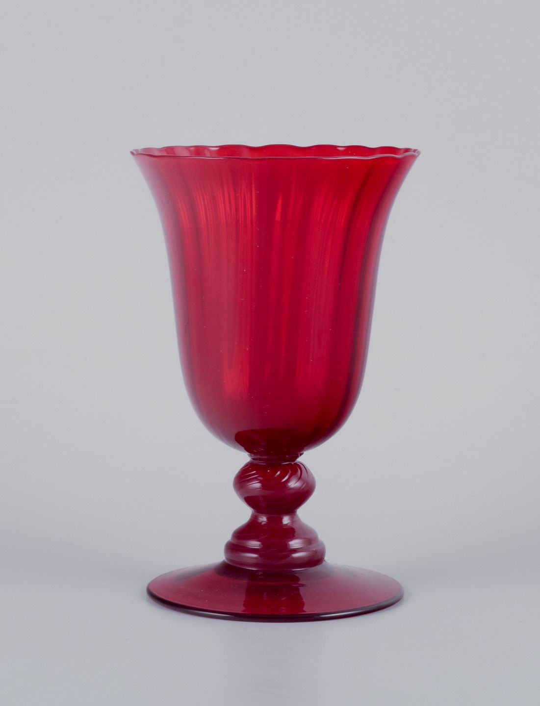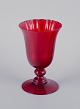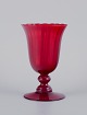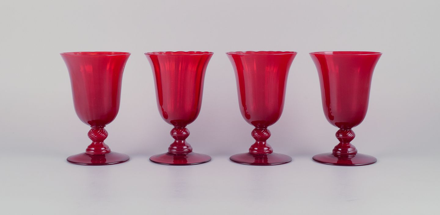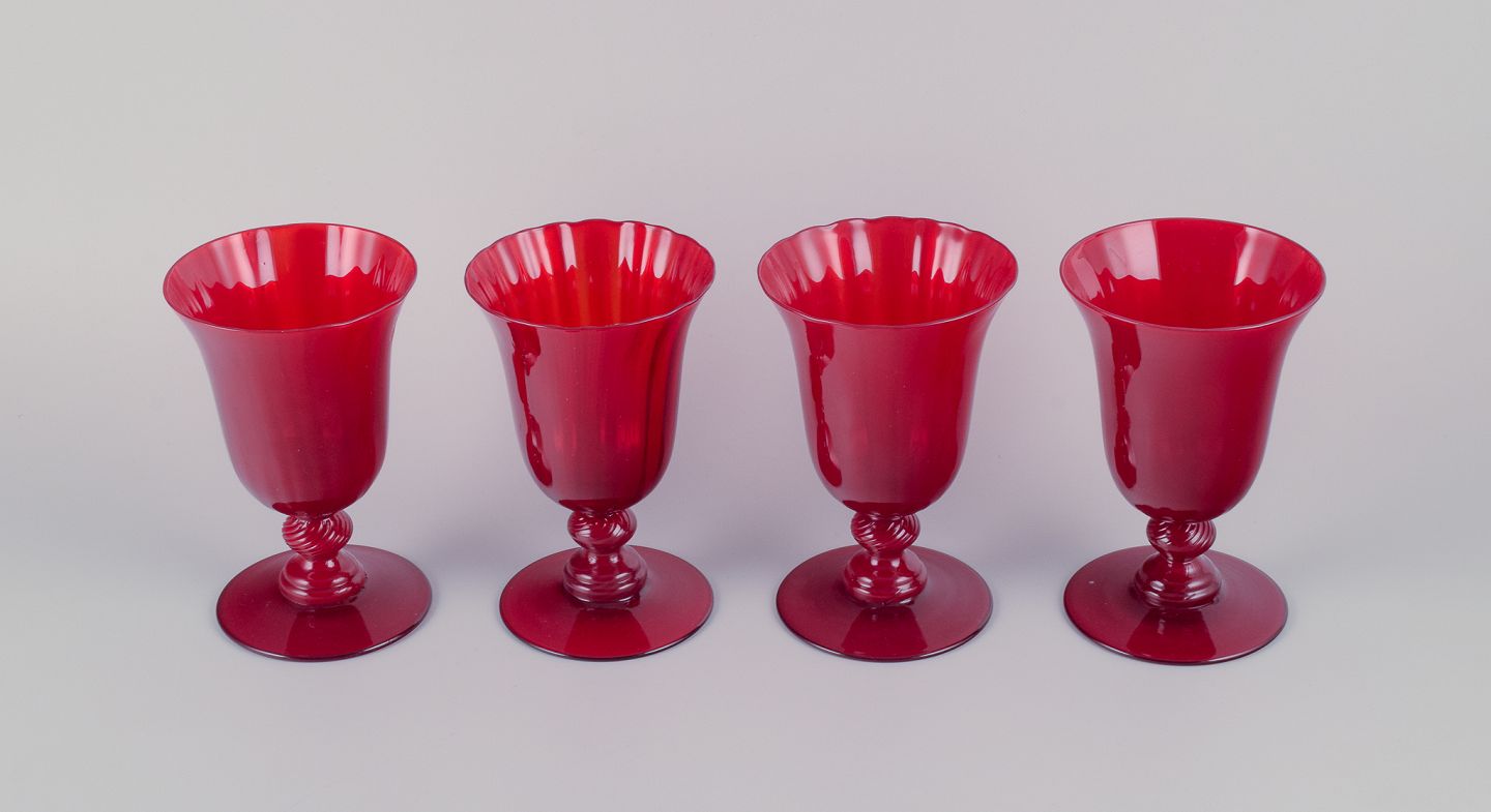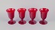 Et sæt på fire store vinglas i rødt glas.