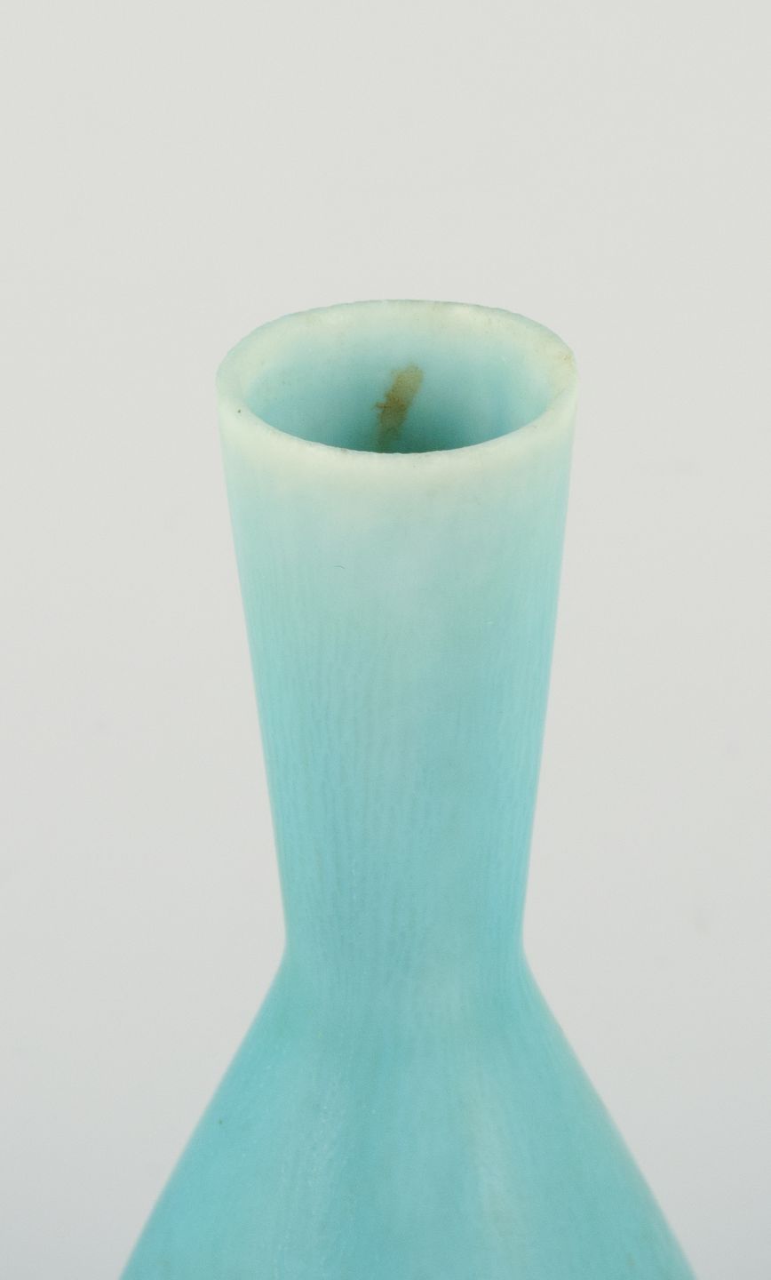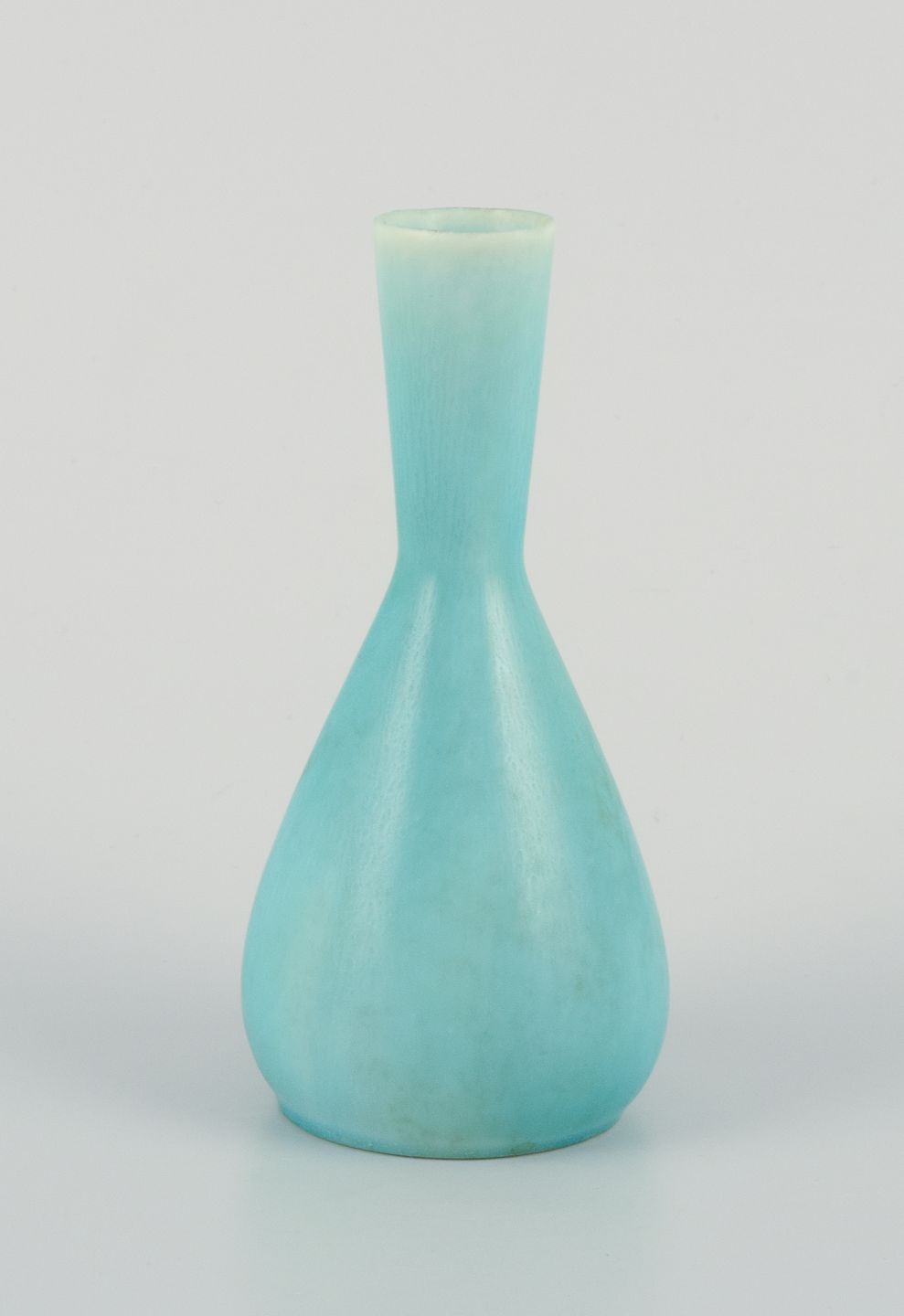 Carl Harry Stålhane for Rörstrand, Sweden, small ceramic vase in beautiful turquoise glaze. Mid-20th century. Marked. In perfect condition. Second factory quality. Dimensions: H 10.8 cm x D 5.0 cm.