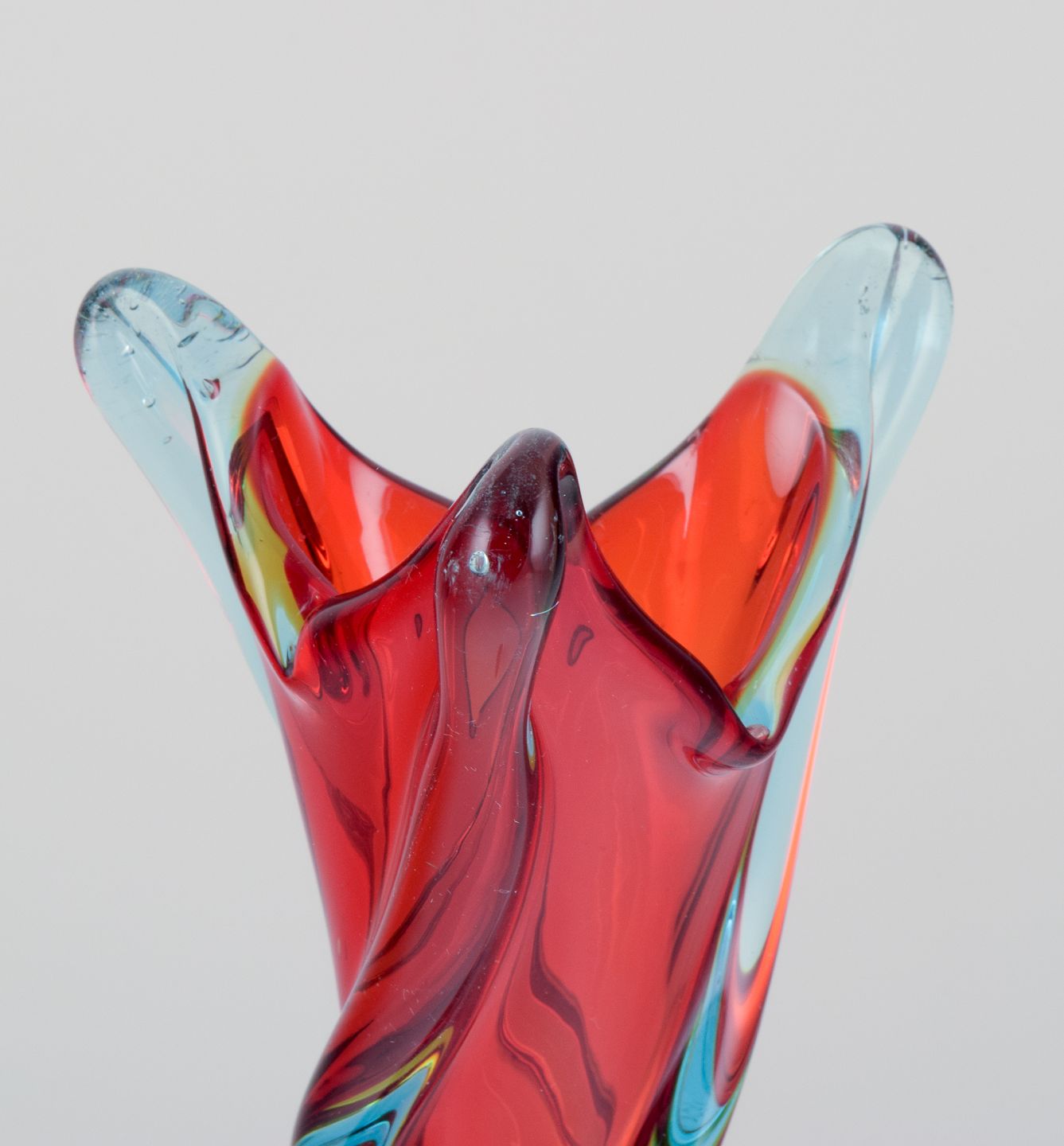 Murano, Italien, stor mundblæst og snoet kunstglasvase i blåt og rødt. 1960/70’erne. I flot stand med minimalt brugspræg. Mål: H 33,0 cm. x D 9,5 cm.