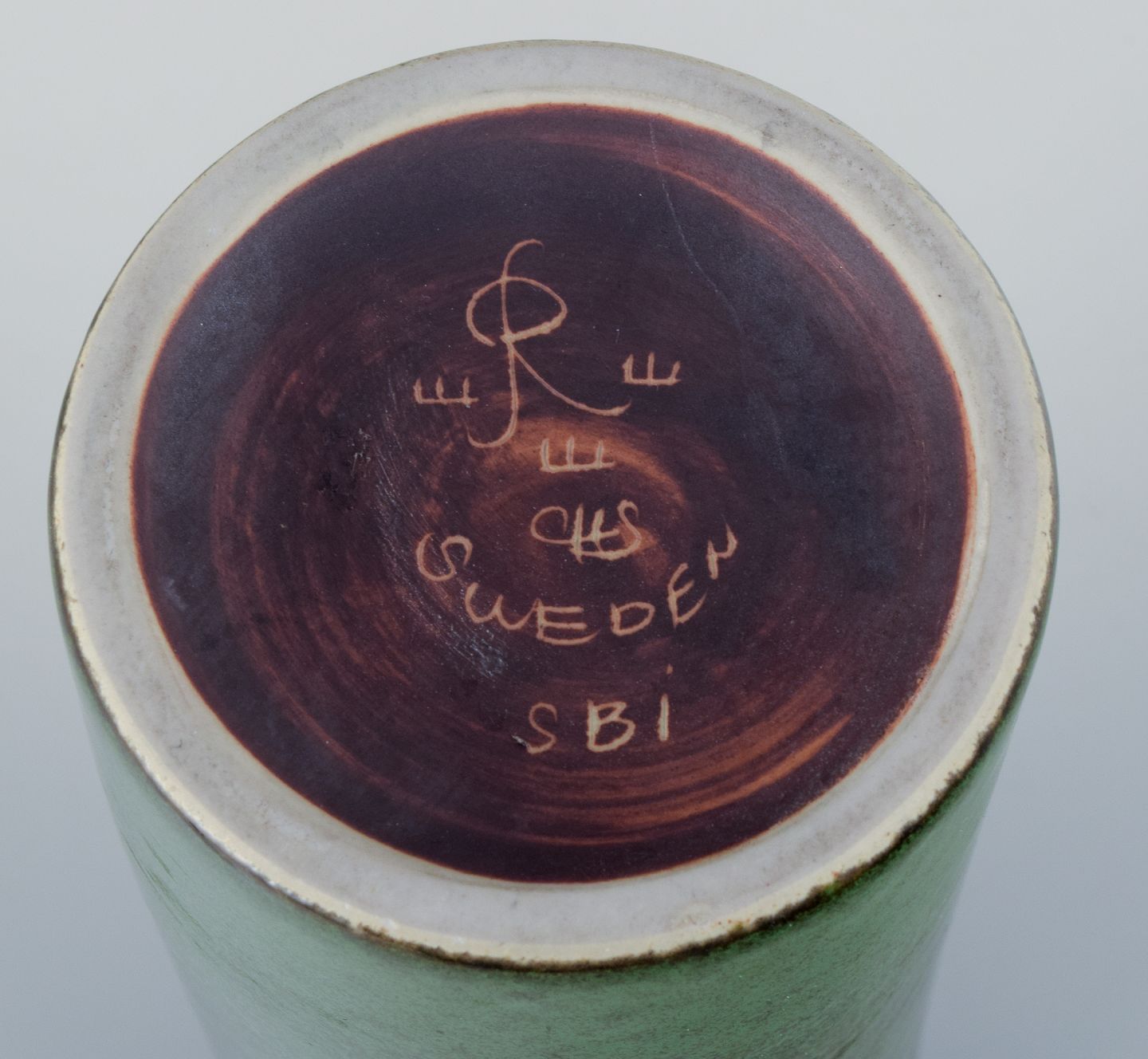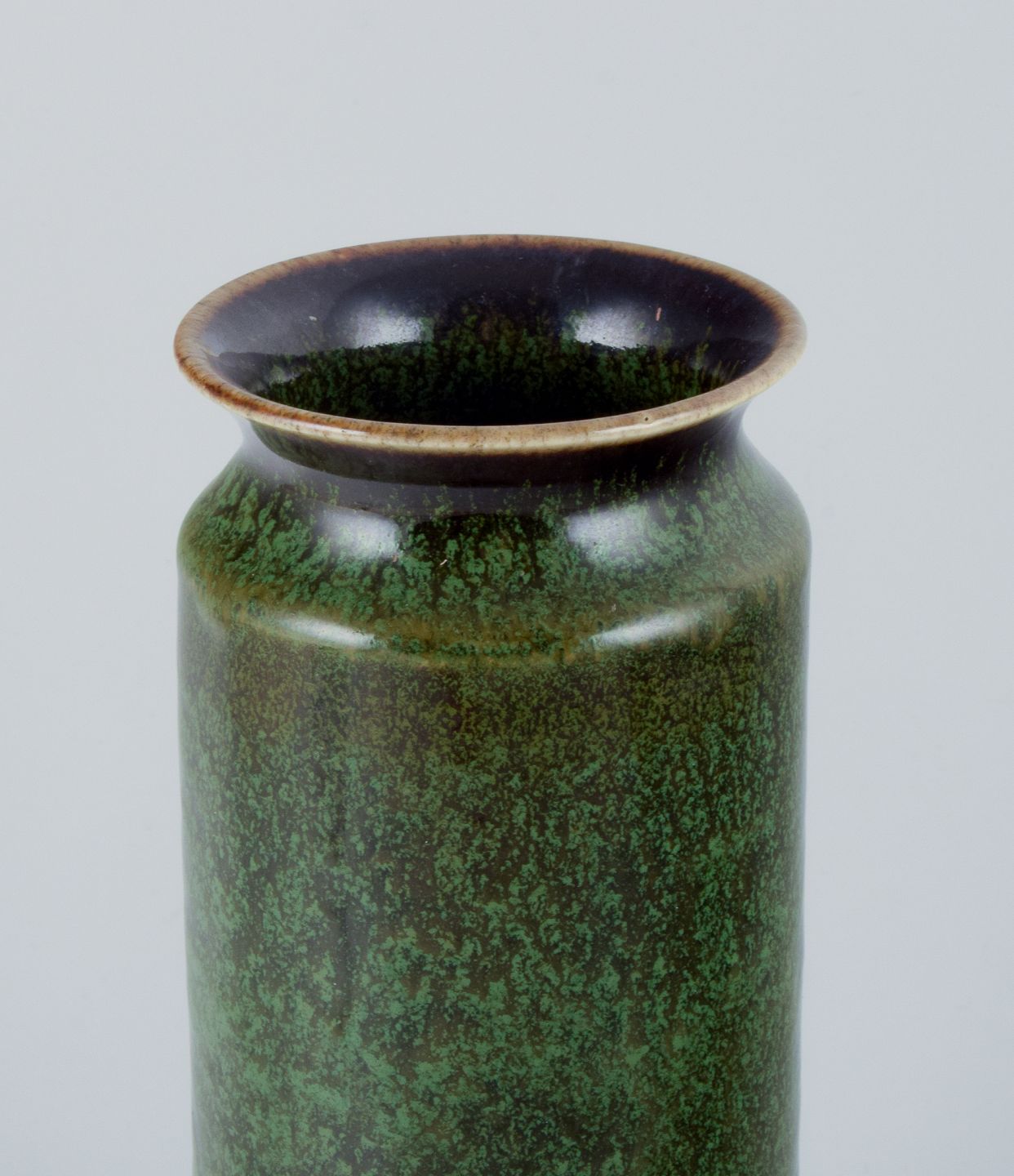 Carl Harry Stålhane for Rörstrand, stor keramikvase med glasur i grønne nuancer. Midt 1900-tallet. Perfekt stand. Første sortering. Stemplet. Mål: H 24,0 cm. x D 7,0 cm.