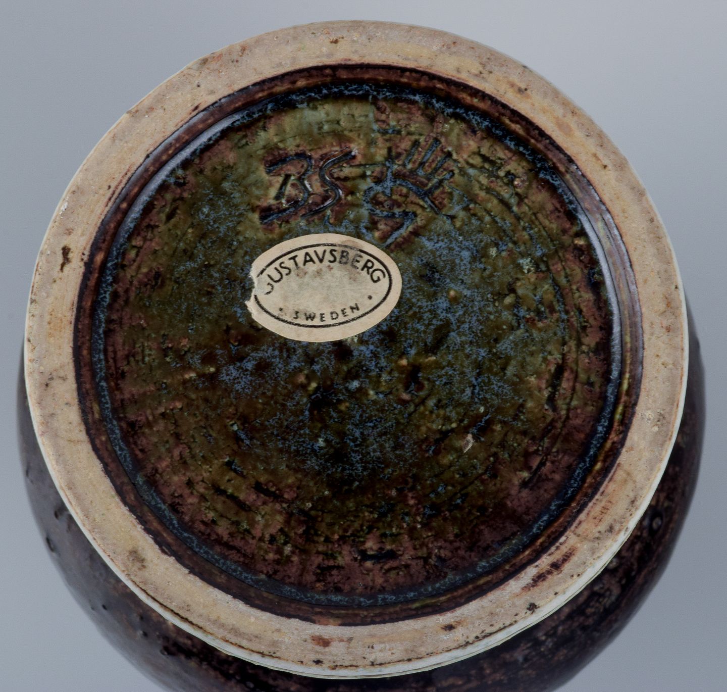 Britt-Louise Sundell (1928-2011) for Gustavsberg Studiohand, Sverige, keramikvase i mørkebrun og sandfarvet glasur.