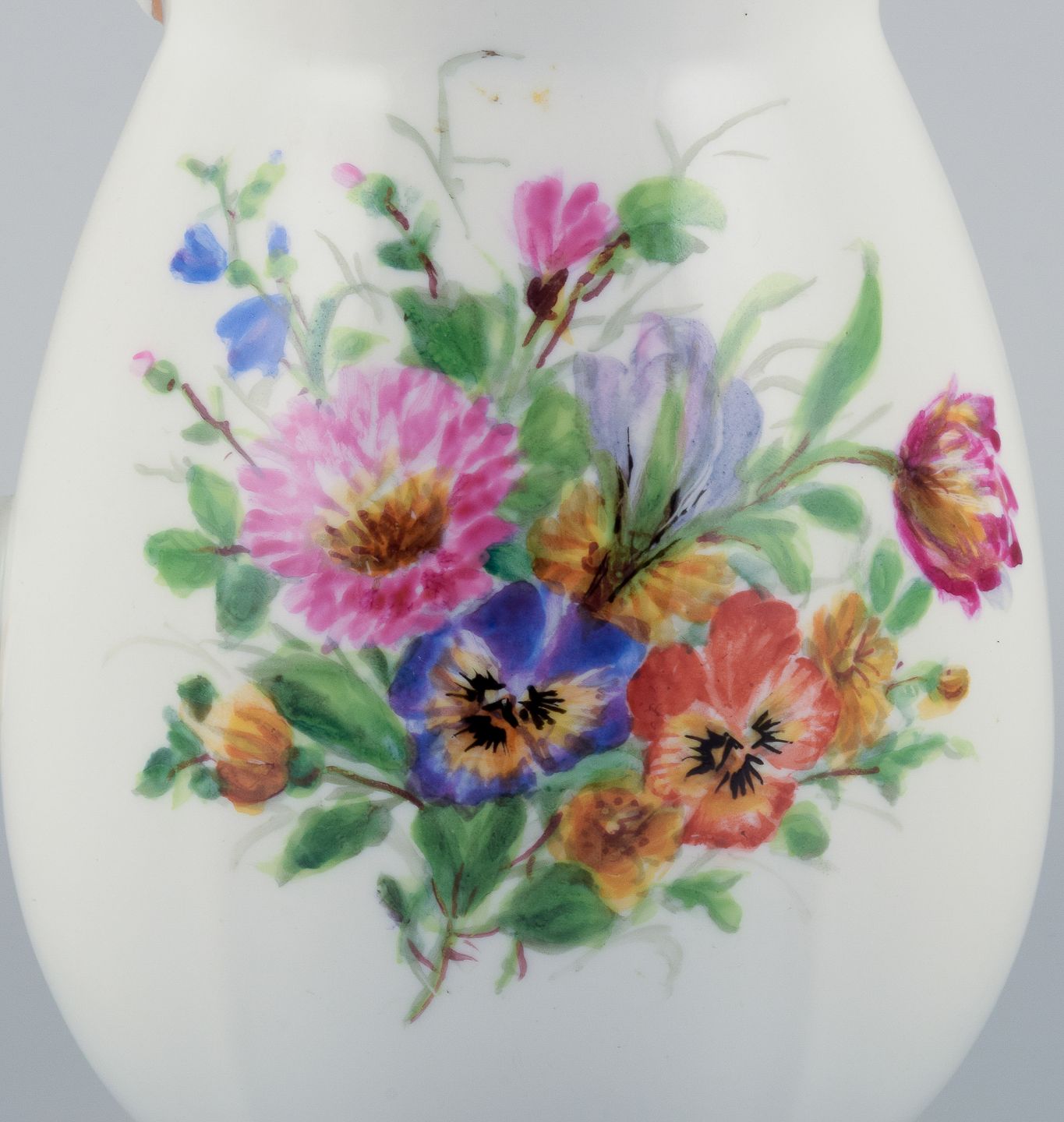Bing & Grøndahl, porcelænskande dekoreret med polykrome blomster med hank i form af søhest.