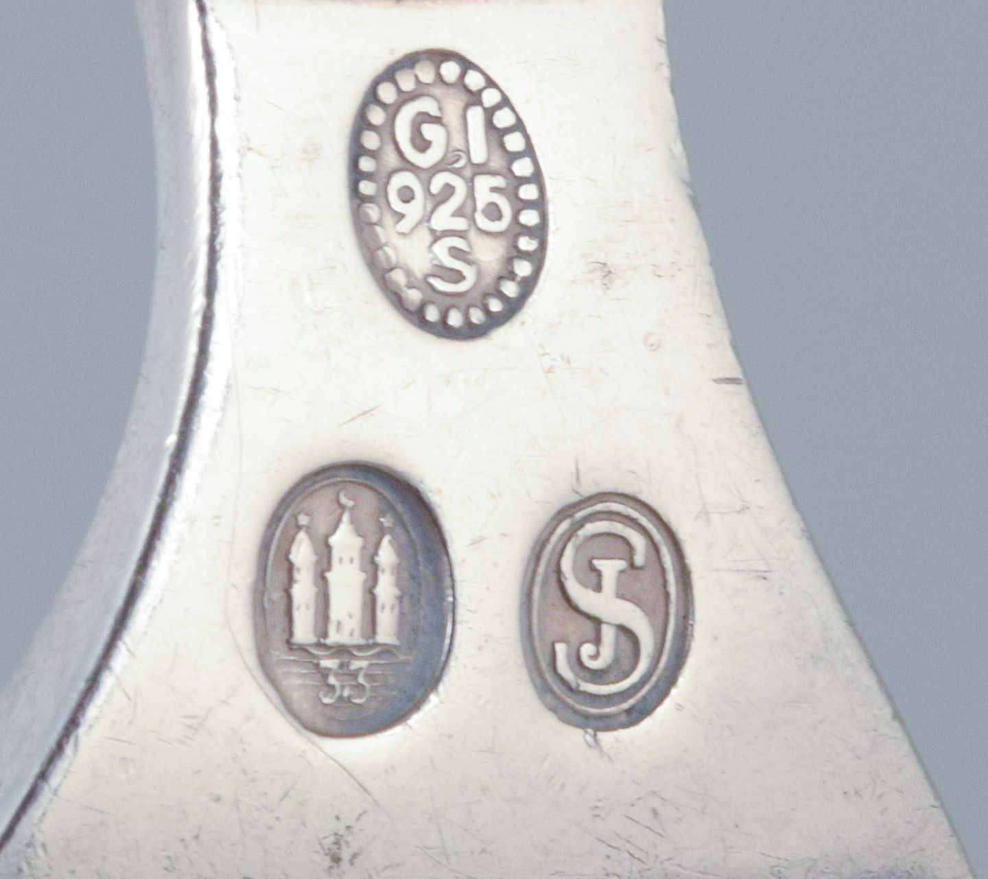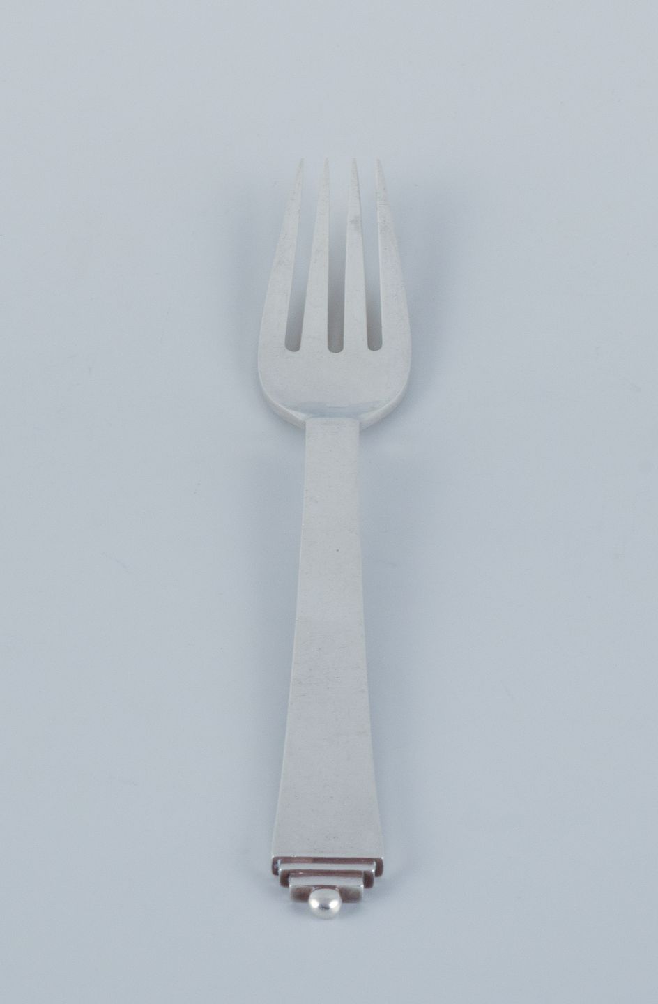 Georg Jensen Pyramide, middagsgaffel i tretårnet sølv. Stemplet med 1915-1932 stempel. I flot stand. Mål: L 19,0 cm.