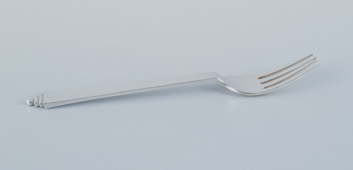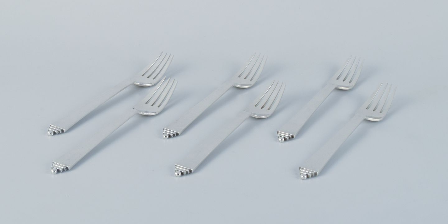 Georg Jensen Pyramide, et sæt på seks middagsgafler i sterlingsølv. Efter 1944 stempel. I flot stand. Mål: L 18,2 cm.