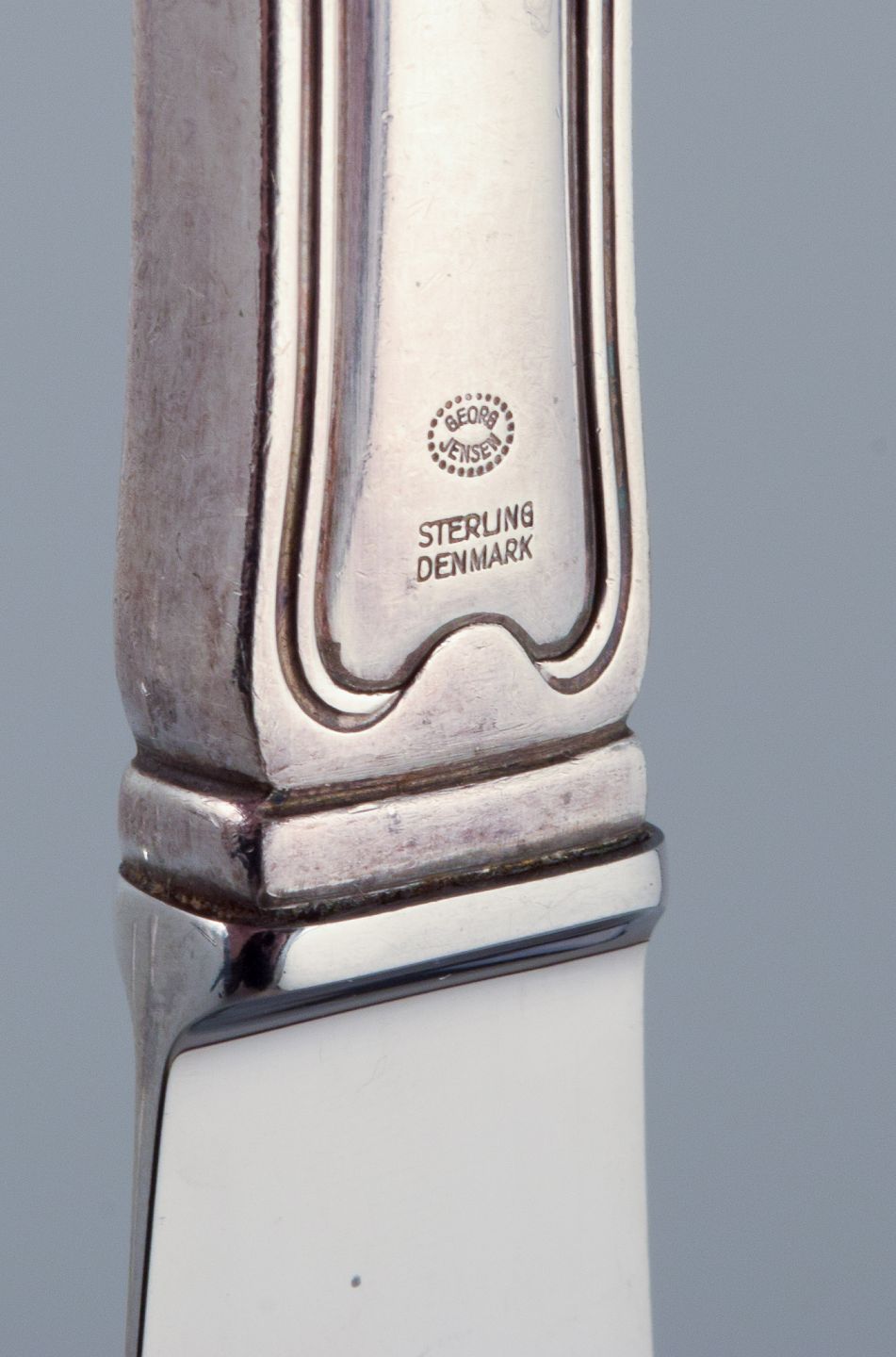 Georg Jensen Old Danish, a complete six-person dinner service in sterling silver with stainless steel knife blades. 18 pieces.